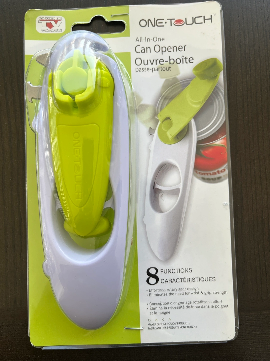 All-in-one can opener with a comfortable, easy-to-use design. It is effortless to use, eliminating the need for wrist and grip strength.