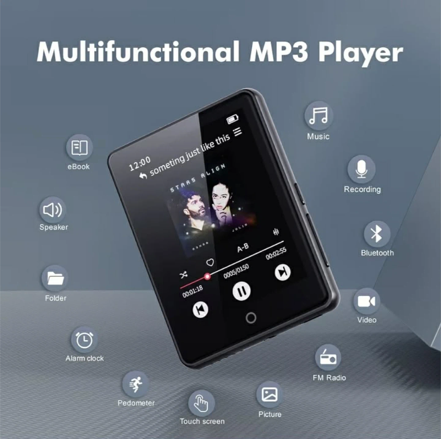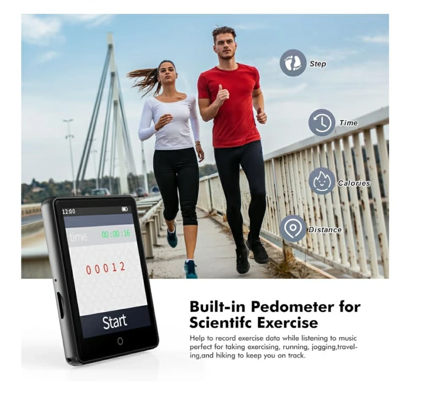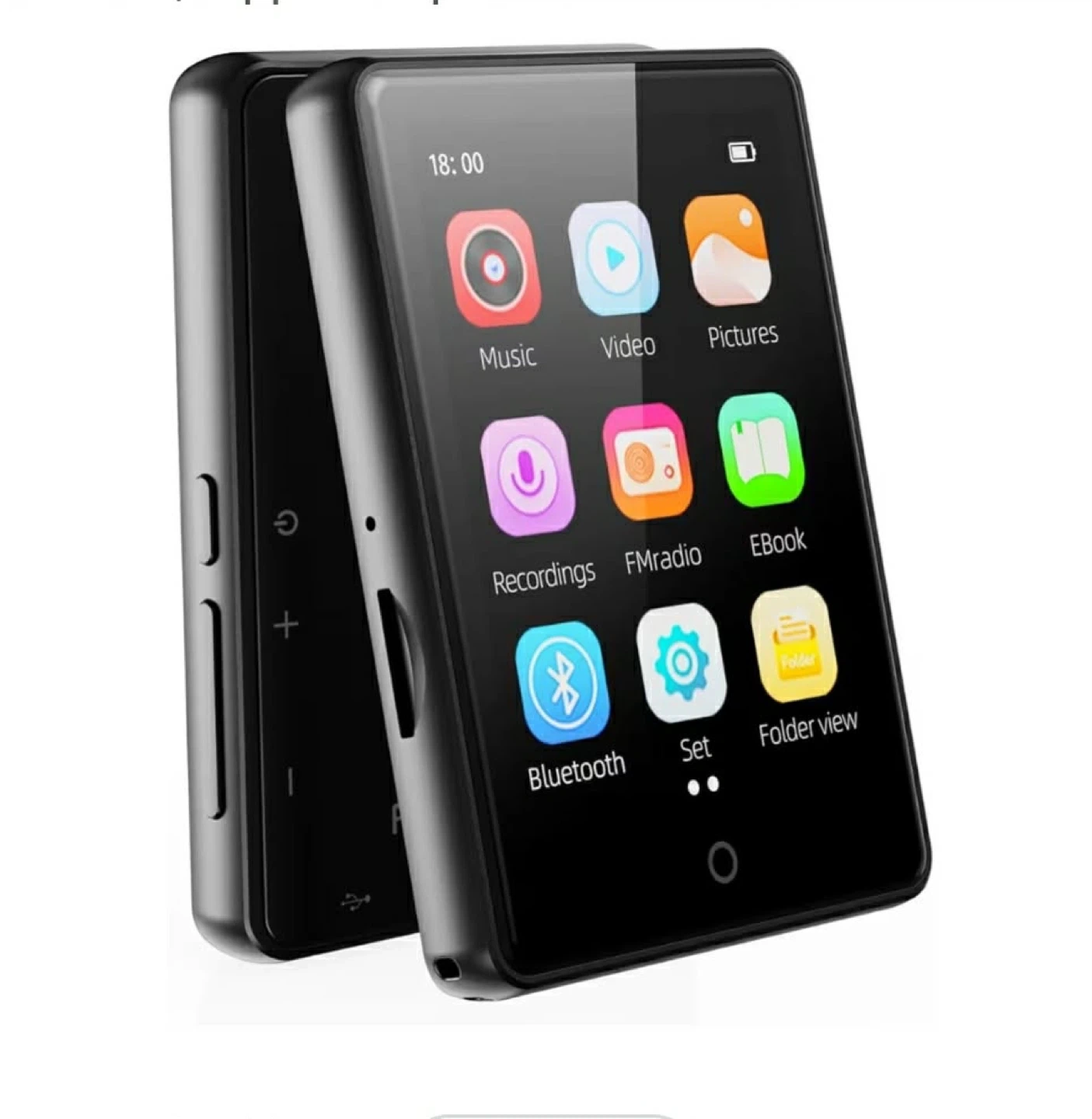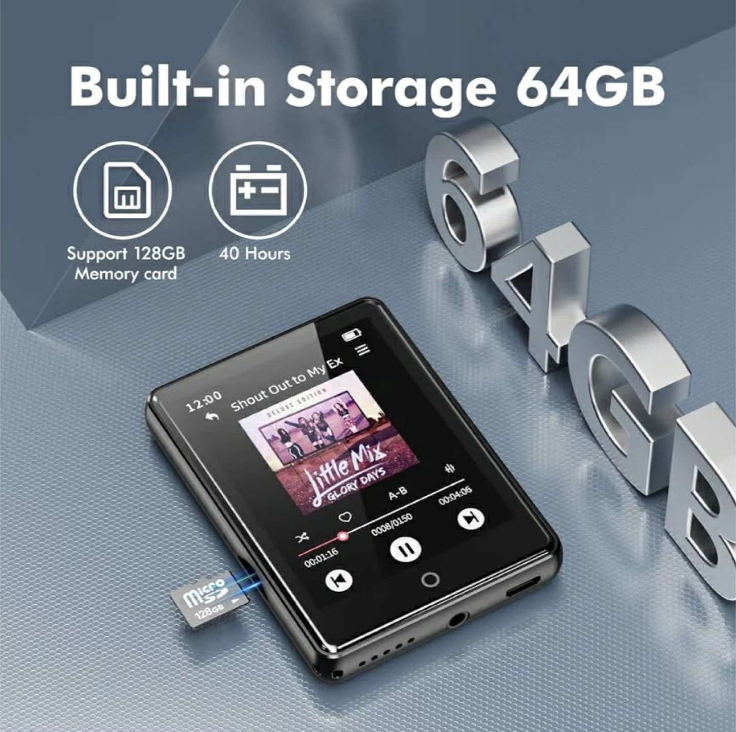 This MP3 player has 64GB built-in storage and supports up to a 128GB memory card. It offers 40 hours of playback and includes music, video, e-book, FM radio, recorder, and pedometer functions. It's great for exercise, learning, or daily use!