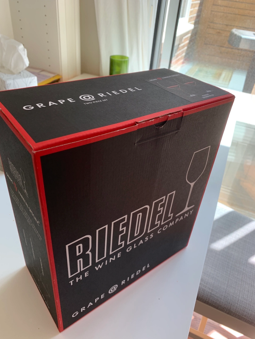 Set of 2 Riedel Grape Varietal wine glasses - brand new, never used, in their original box. Plus 5 used glasses of the same type, in perfect condition, no chips or other defects. Designed for Pinot Noir.