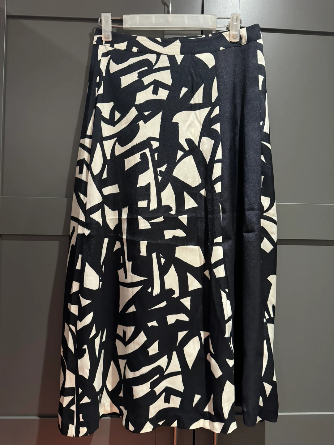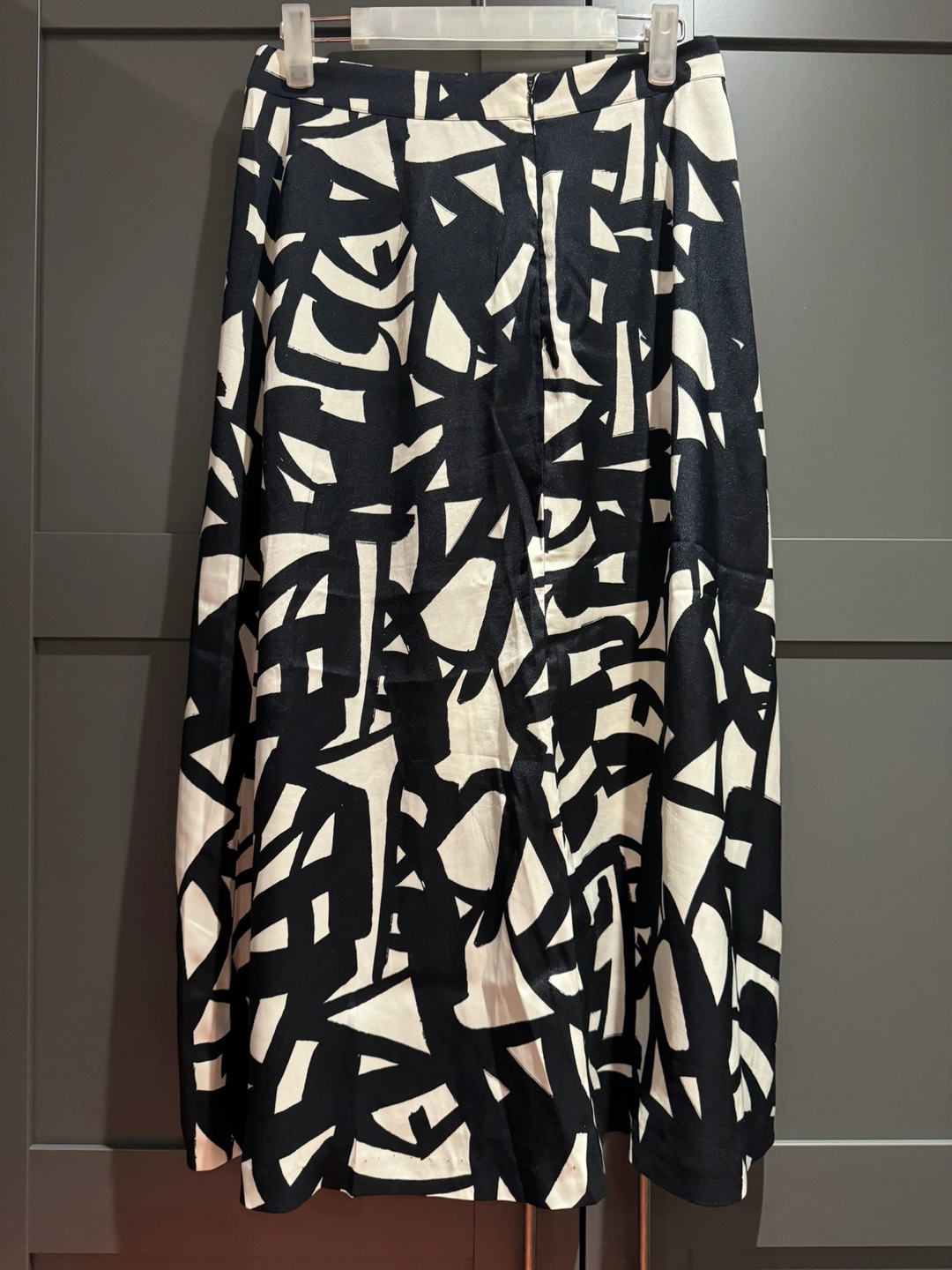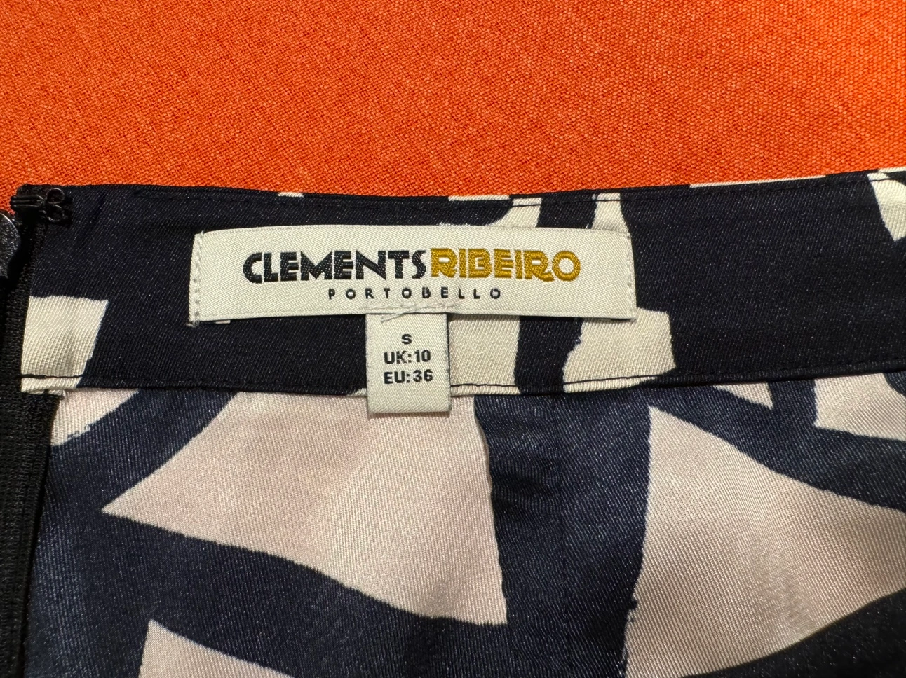 140Pick up at 16th Ave & Stonebridge Dr Clements Ribeiro black and white geometric print skirt with a zipper closure in the back. Black panel details at front side Waist 35cm Length 80cm