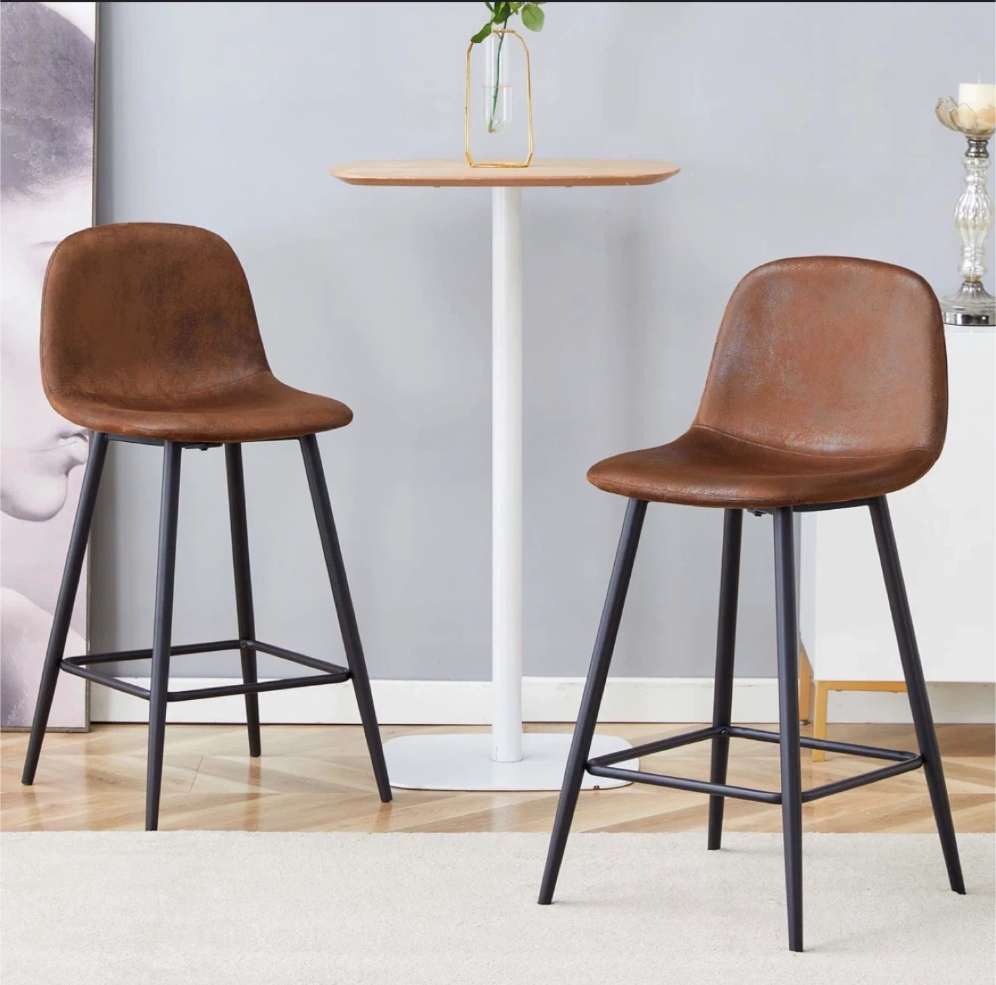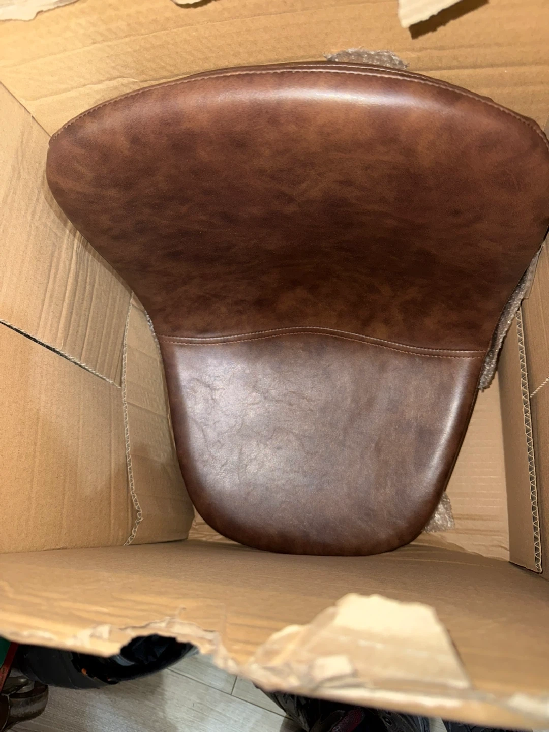 Selling a set of brand new bar stools! These are a stylish brown faux leather with black metal legs. They are still in the box, ready for easy assembly. Perfect for adding a modern touch to your kitchen or bar area