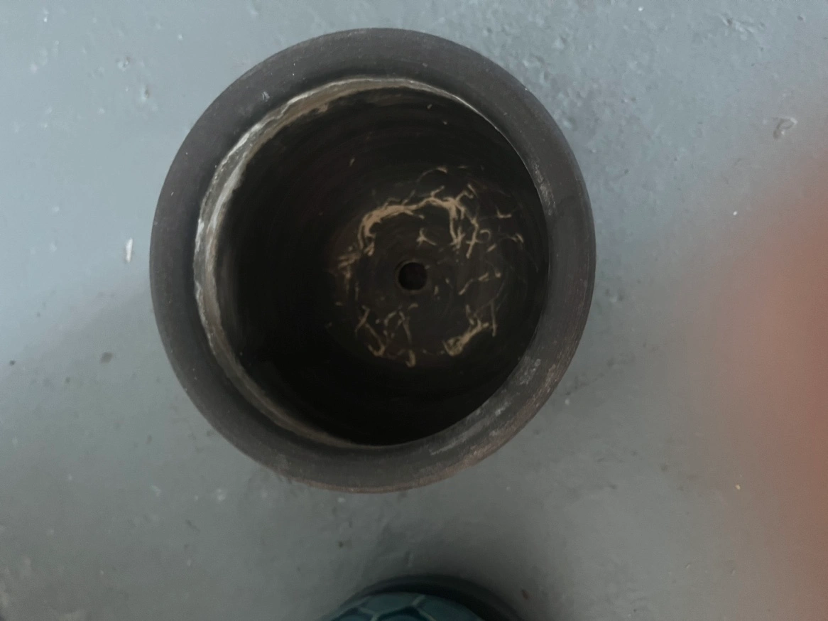 Two small terracotta pots with saucers. Perfect for small plants. The pots are each about 5 inches tall and 4 inches wide. The saucers are about 4 inches wide. $10 each