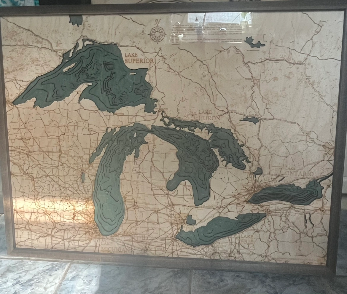 This beautiful wooden map was originally commissioned from the cutting brothers Canada and retails for $540 on their website.
