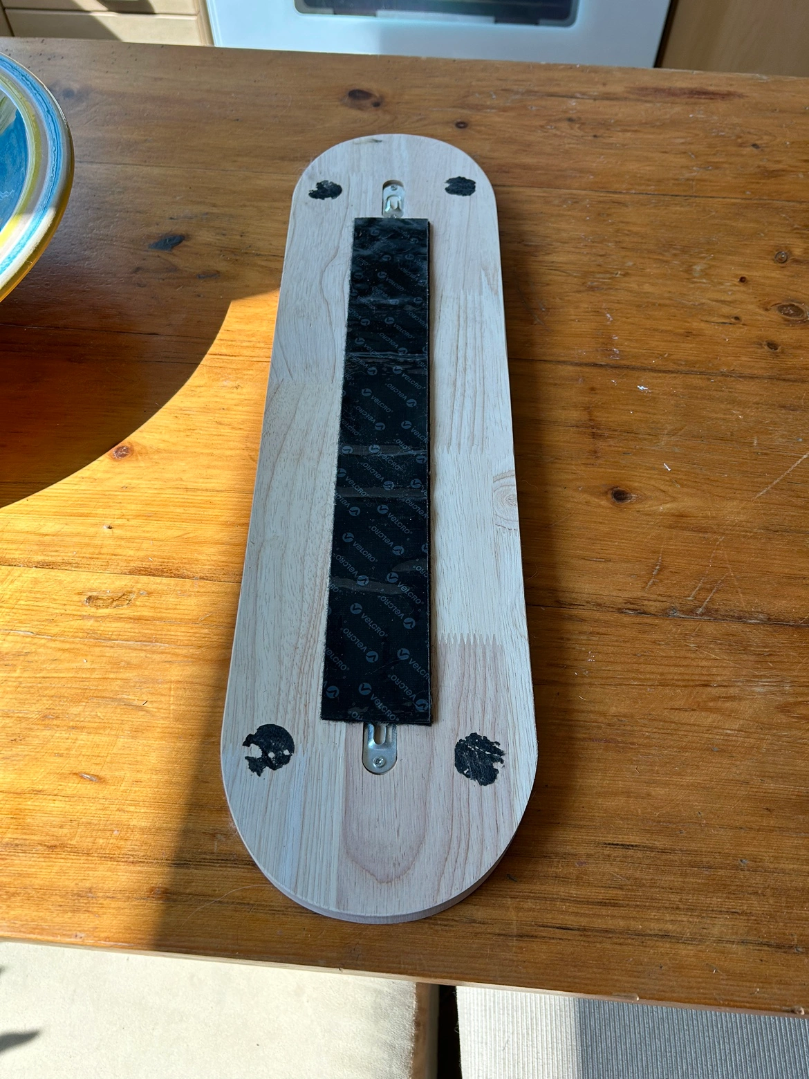 It has slots on the back for wall mounting. I used industrial velcro and this is included. The adhesive is incredibly strong.