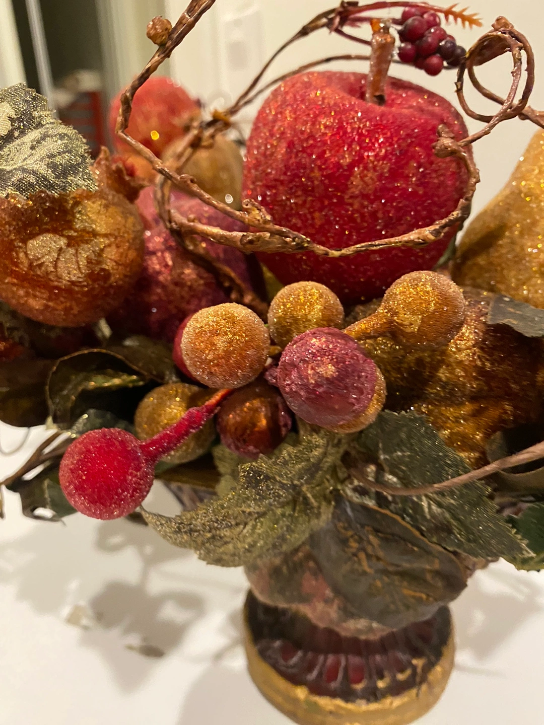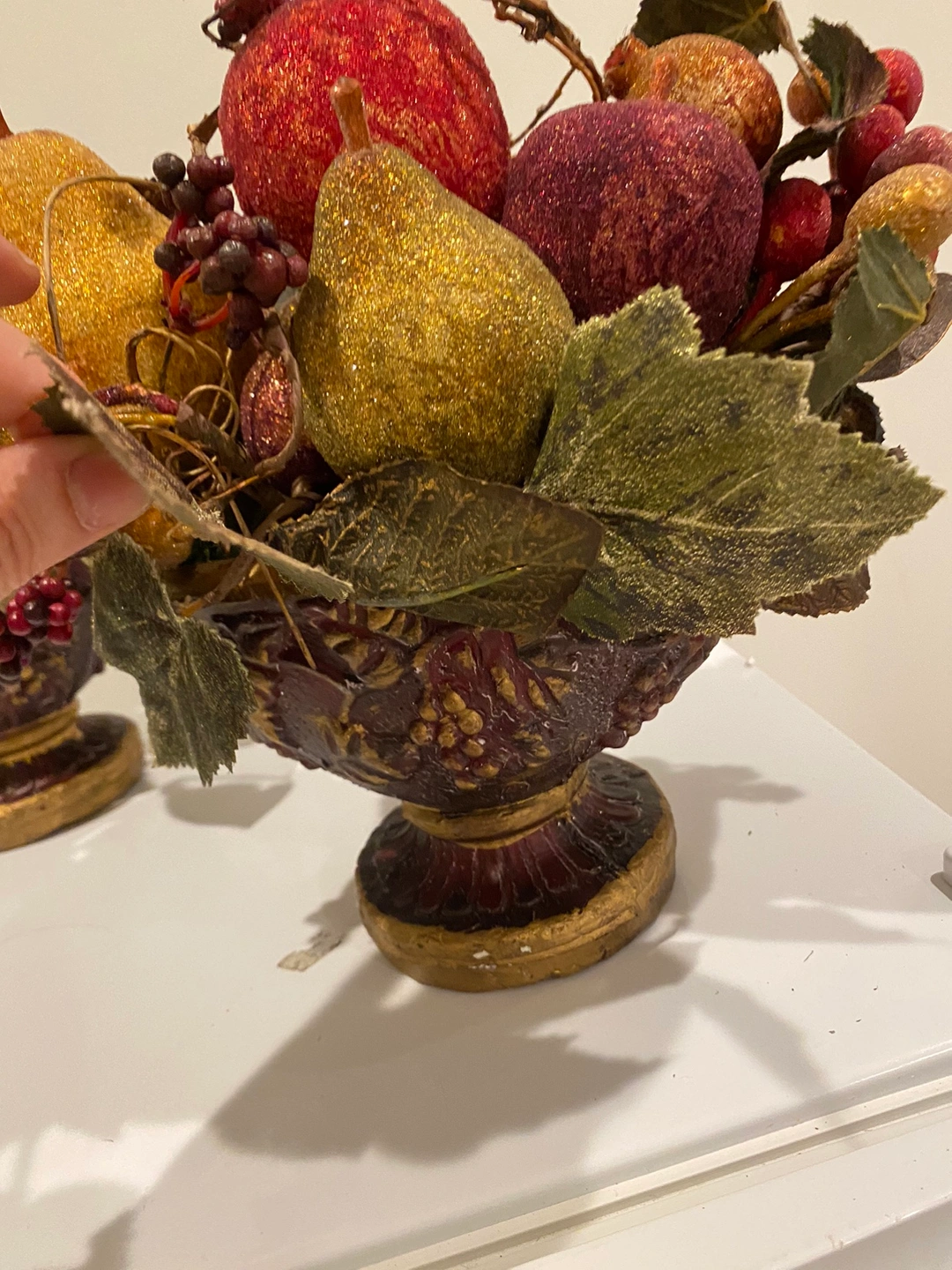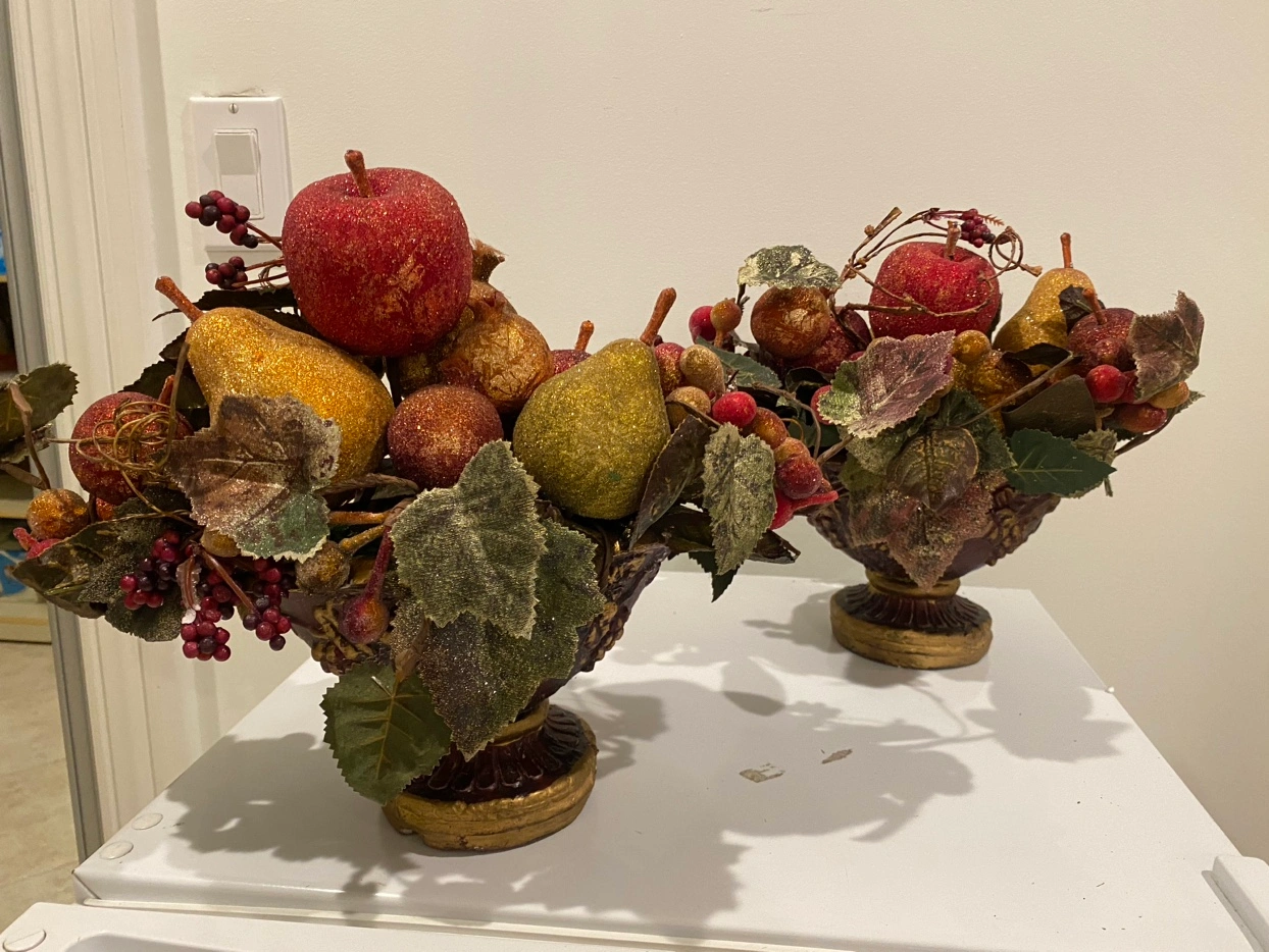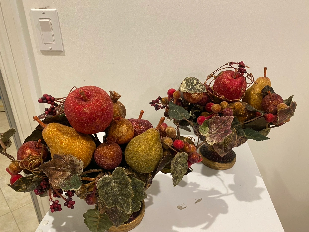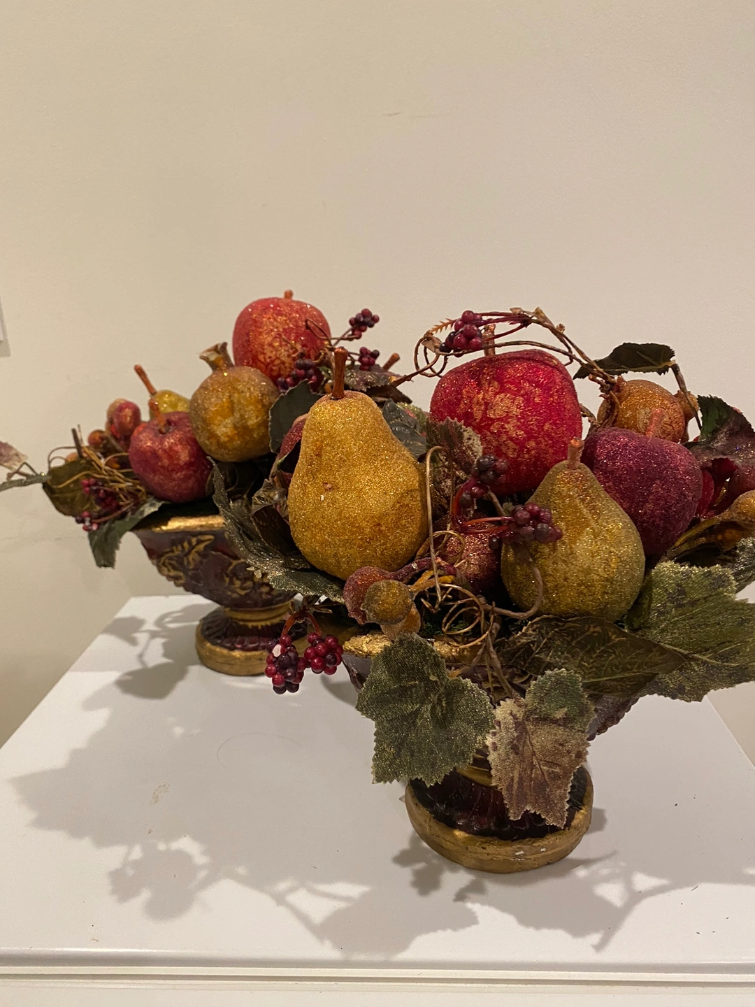 13Two decorative fall fruit centerpieces. Each one has a mix of pears, apples, and berries. They are in a burgundy and gold bowl. Pick up near Weston Rd and Wilson Ave or Yonge and St. Clair ave.