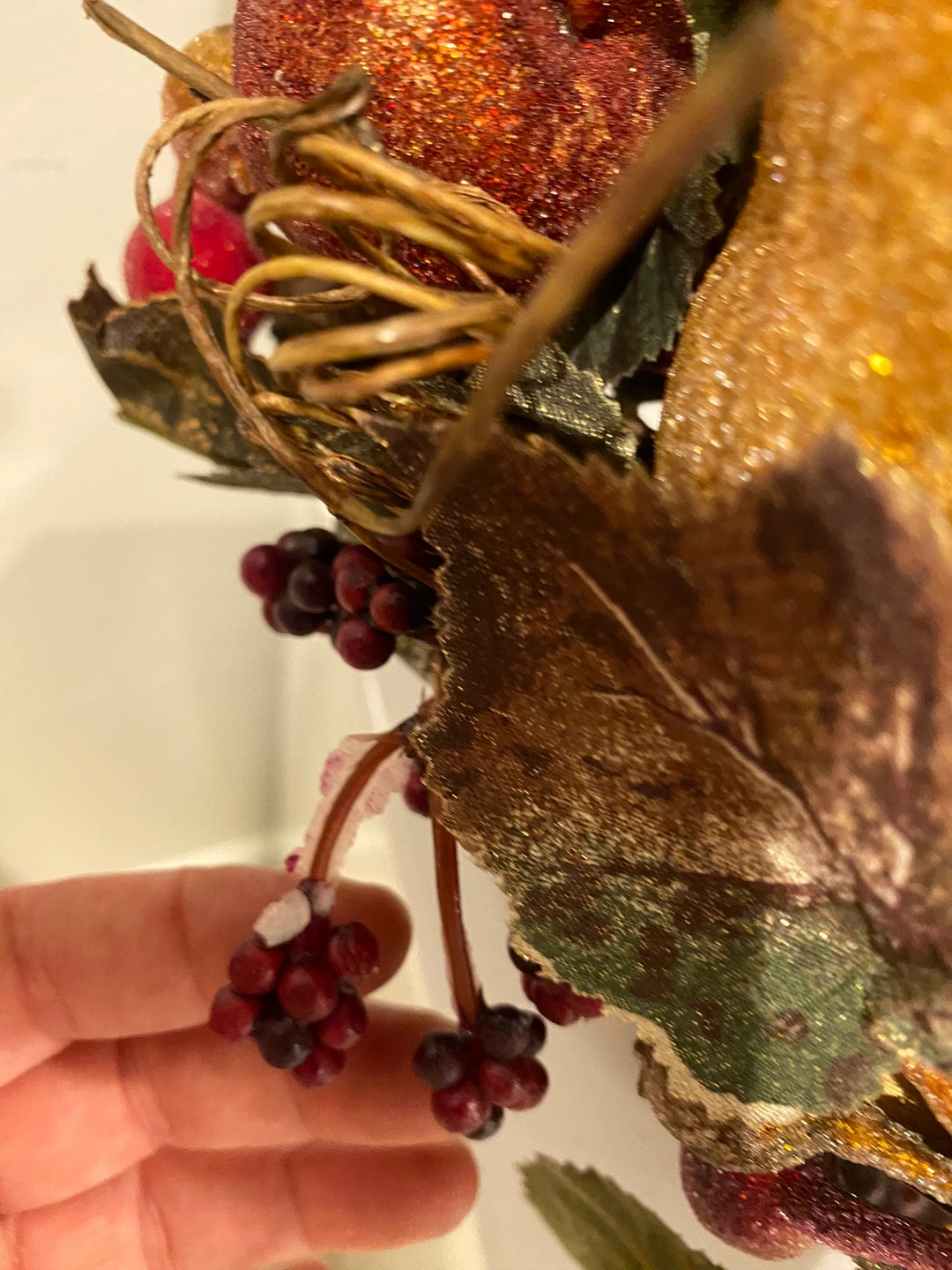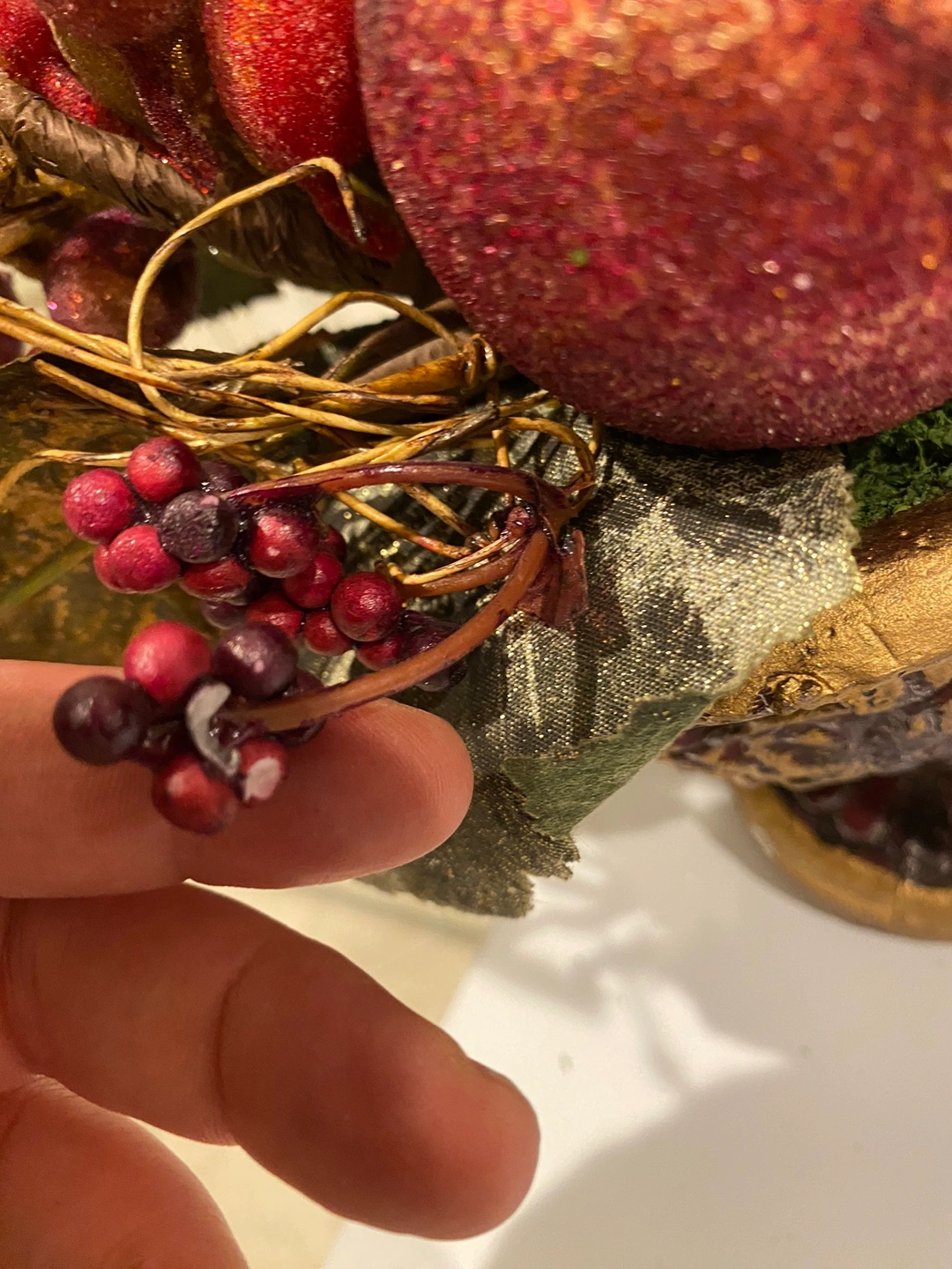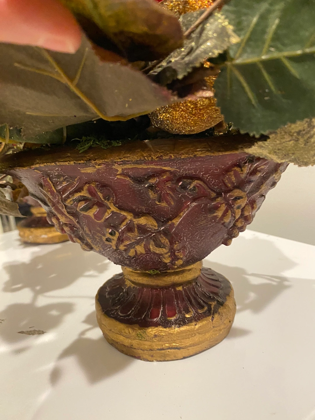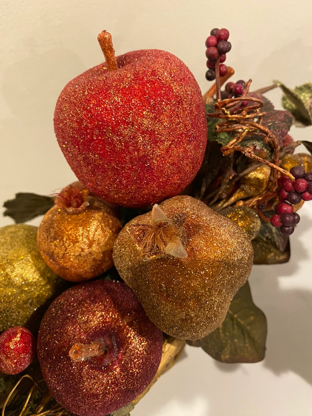 13Two decorative fall fruit centerpieces. Each one has a mix of pears, apples, and berries. They are in a burgundy and gold bowl. Pick up near Weston Rd and Wilson Ave or Yonge and St. Clair ave.