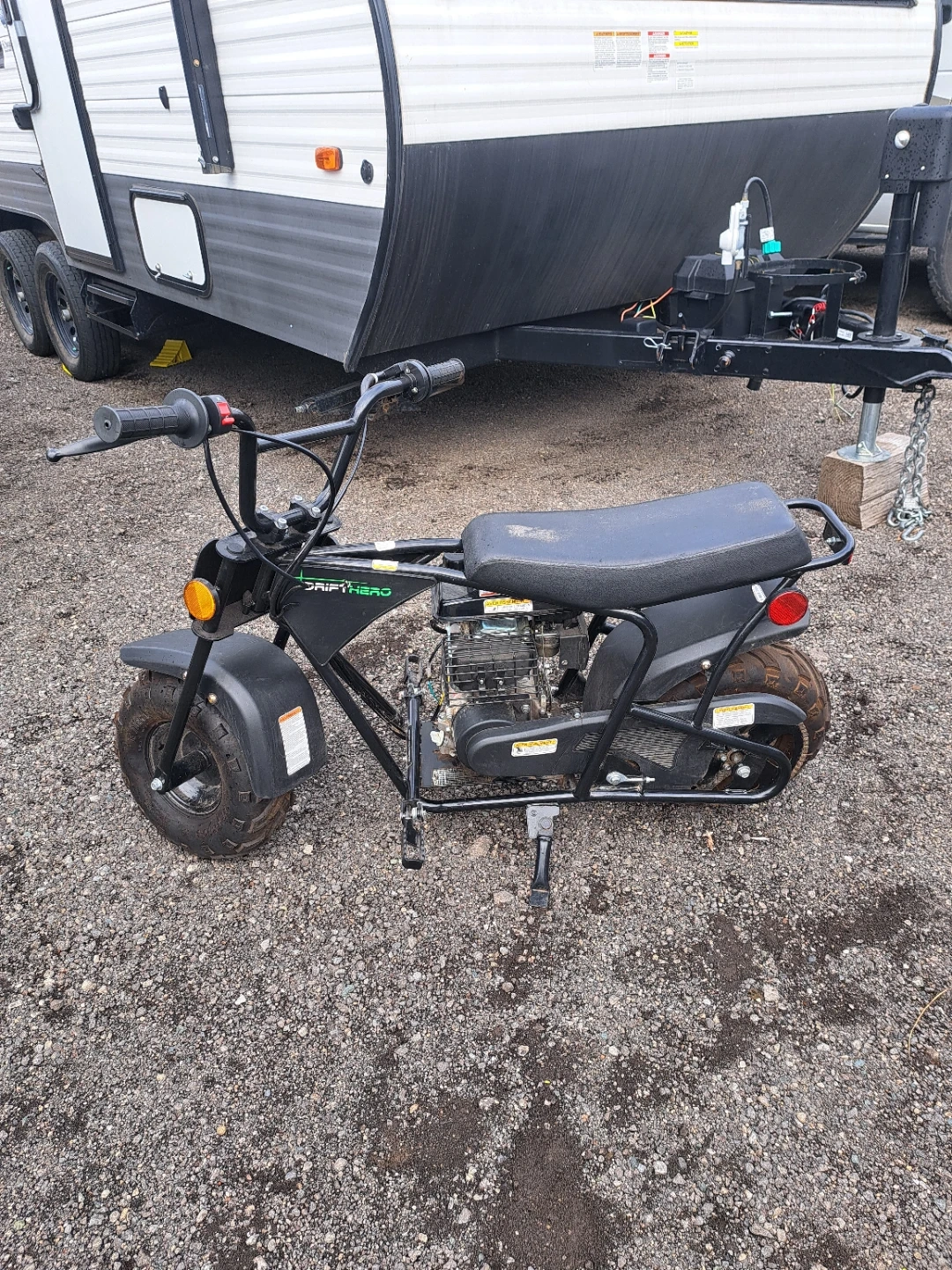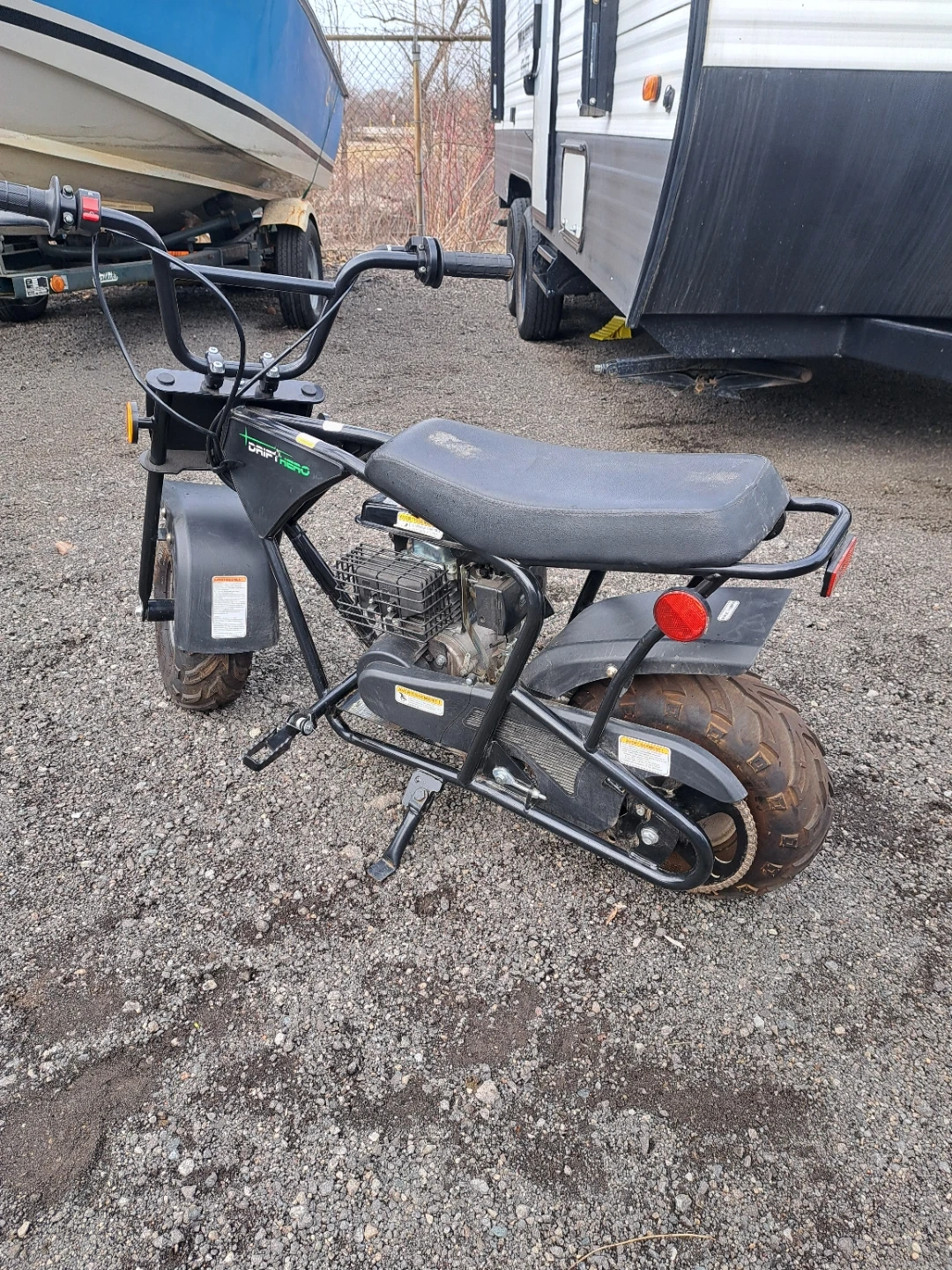 Used less than 2 hrs. Only on 2nd tank of gas, so practically new. Everything is new, tires are dusty from storage. Purchased last fall. Small rub mark on side cover, not from being dropped, from storage incident. Looking for possible trade "up" for dirt bike. (This bike +cash)