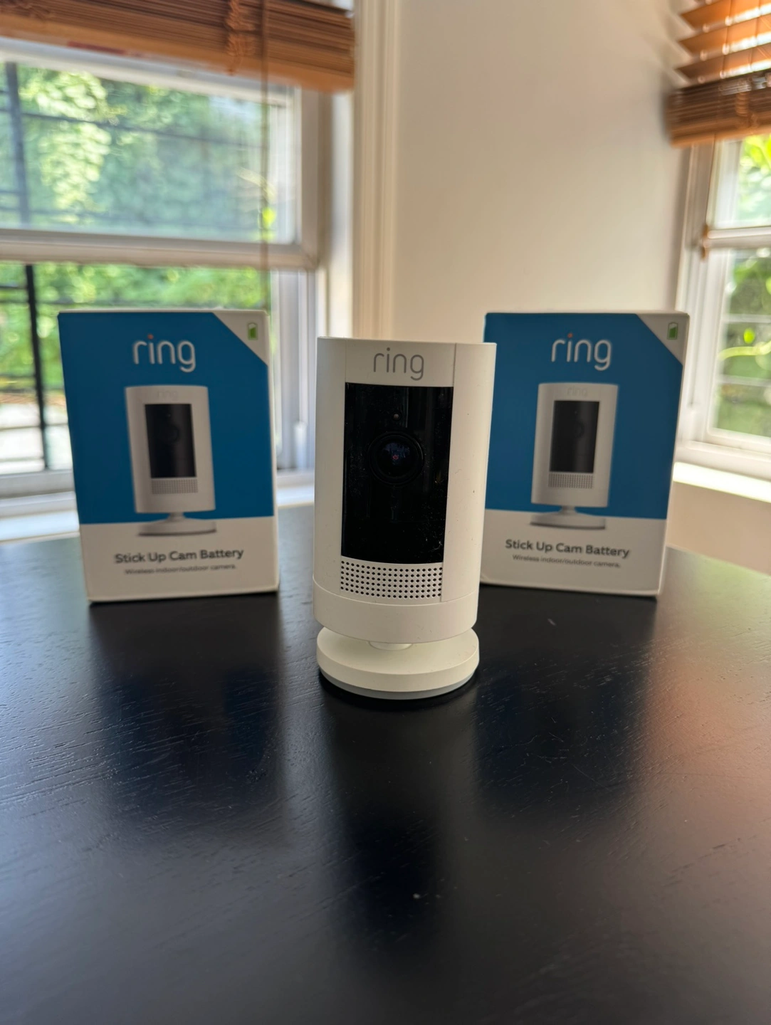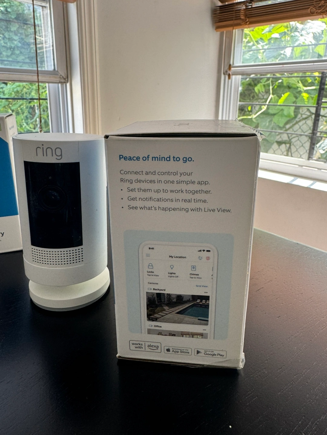 Stick up camera battery, wireless indoor or outdoor camera connect and control your ring device in one simple app brand new never been used still in box. 150 for all three or $60 apiece.