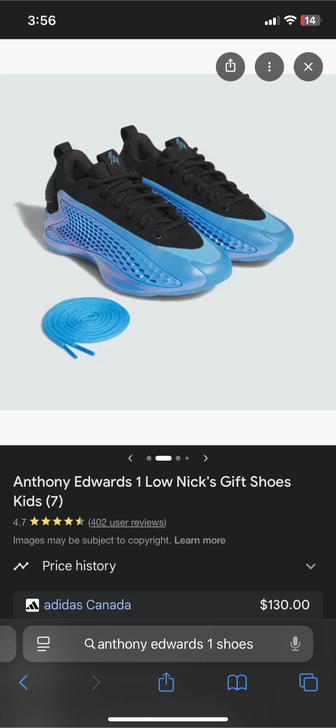 Buy & SellAnthony Edward’s 1 low size 4USAnthony Edward’s 1 low size 4US$40Selling my well taken care of Anthony Edward’s 1 low basketball shoes in size 4US originally purchased from adidas store for $130.00+ConditionGoodSize4USBrandAdidas WHERE TO MEETCheck LocationView MapSELLERverifiedMkBloor Annex25621 reviews0 chats·0 favorites·7 viewsSEND CHAT TO SELLERHi Mk! I’m interested in your listing.Hi Mk! I’m interested in your listing.Get the Karrot app to chatSign In to chat
