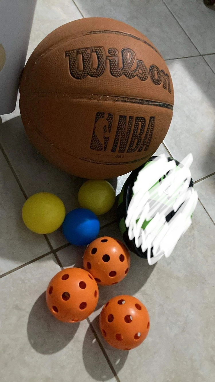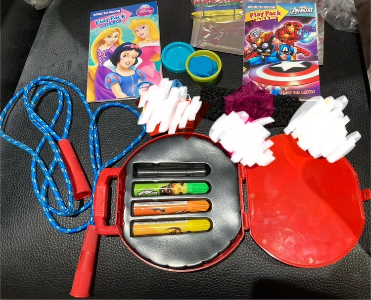 A bundle of children's toys and activities including a basketball, jump rope (one handle broken), 2 twelve page double sided colouring books, 3 markers, and play doh. Take what you’d like Porch pickup near Donald Cousens Parkway and Highway 7 in east Markham OR can bring to work on certain days near Weston and Steeles