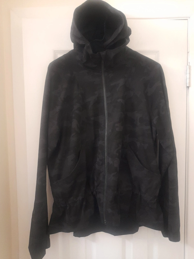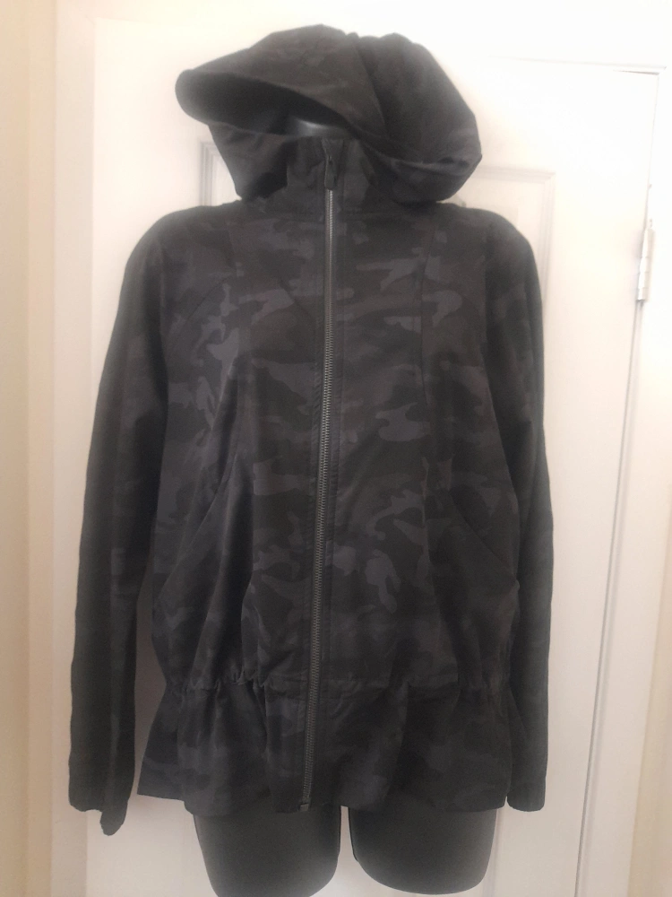 1000+Brand: Lululemon Athletica Color: Black Camo print Size: US 8 Measurements (approx.) Laid flat on floor: P2P: 21" Length: 24.5" Features: -side zippered pockets -interior pouch pocket Condition: Very Good Notes: -Material/care/size/brand tags has been removed.. Comes from a smoke and pet free home