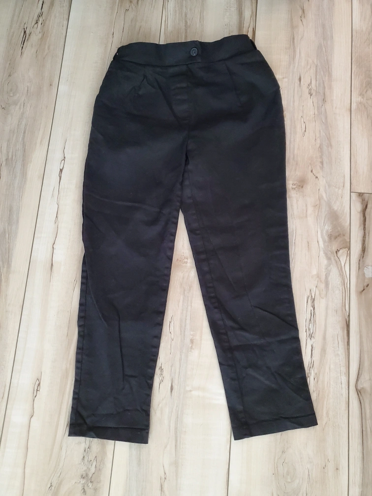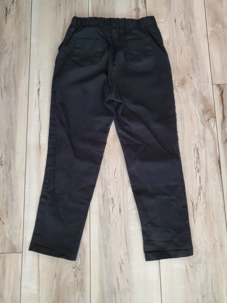 Brandnew black pants with an elastic waistband and button closure. They are made from a soft and comfortable fabric. They have two front pockets and two back pockets. Bought in Korea.