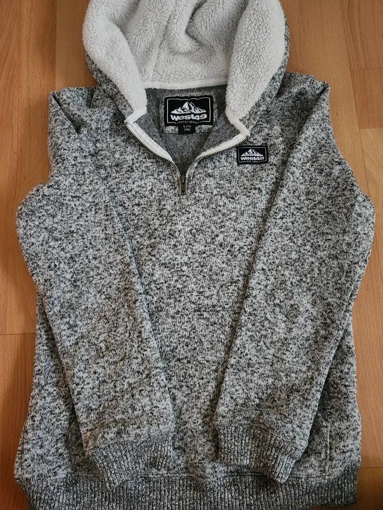 42Grey and white fleece hoodie and a half zip with a sherpa lining. Brand new, selling it because I am cleaning out Size L/G ( Youth 14)