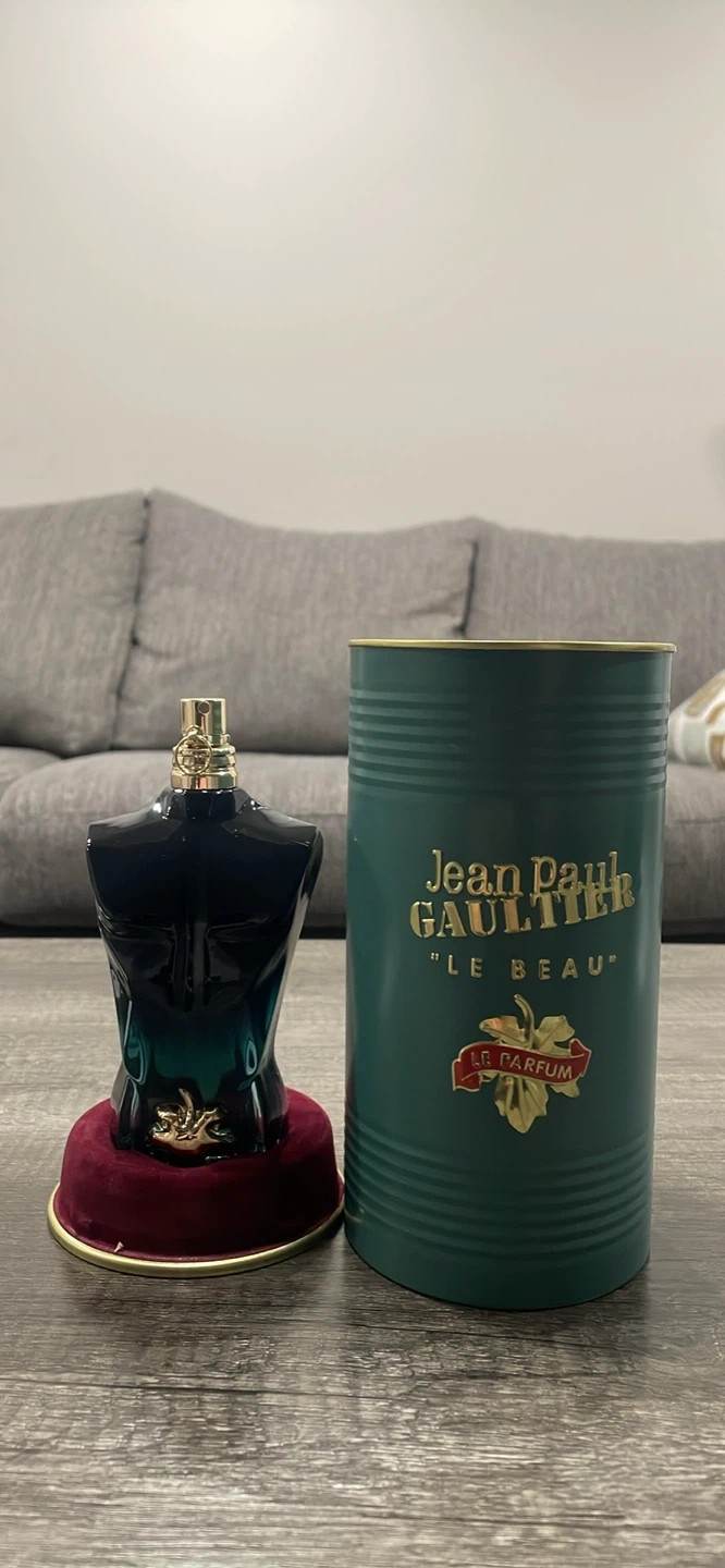 Selling a bottle of Jean Paul Gaultier Le Beau Le Parfum (125ml). This fragrance is known for its fresh, tropical vibe with a smooth woody finish—perfect for everyday wear or going out.