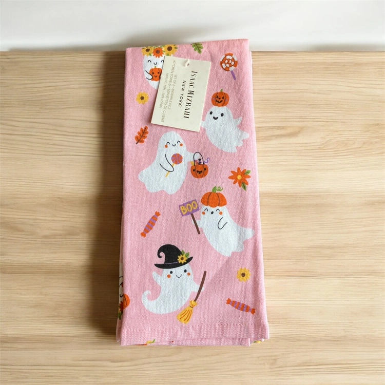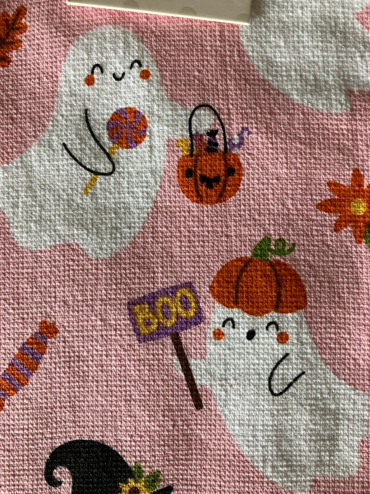 Cute pink kitchen towels with Halloween ghost and pumpkin design. Perfect for the fall and Halloween season!