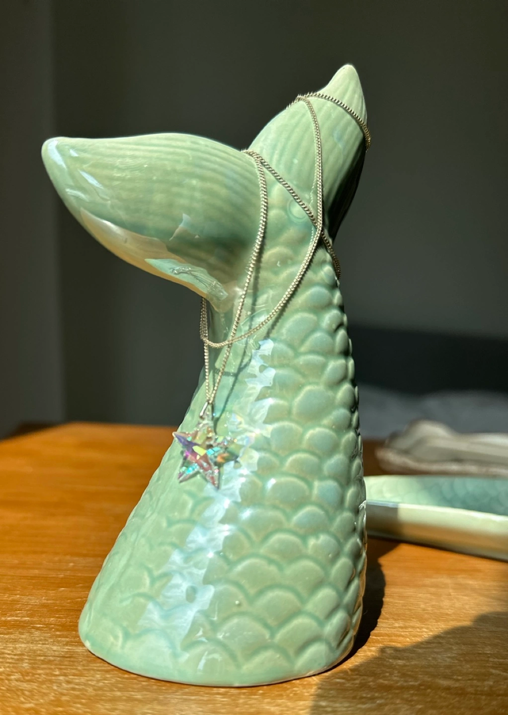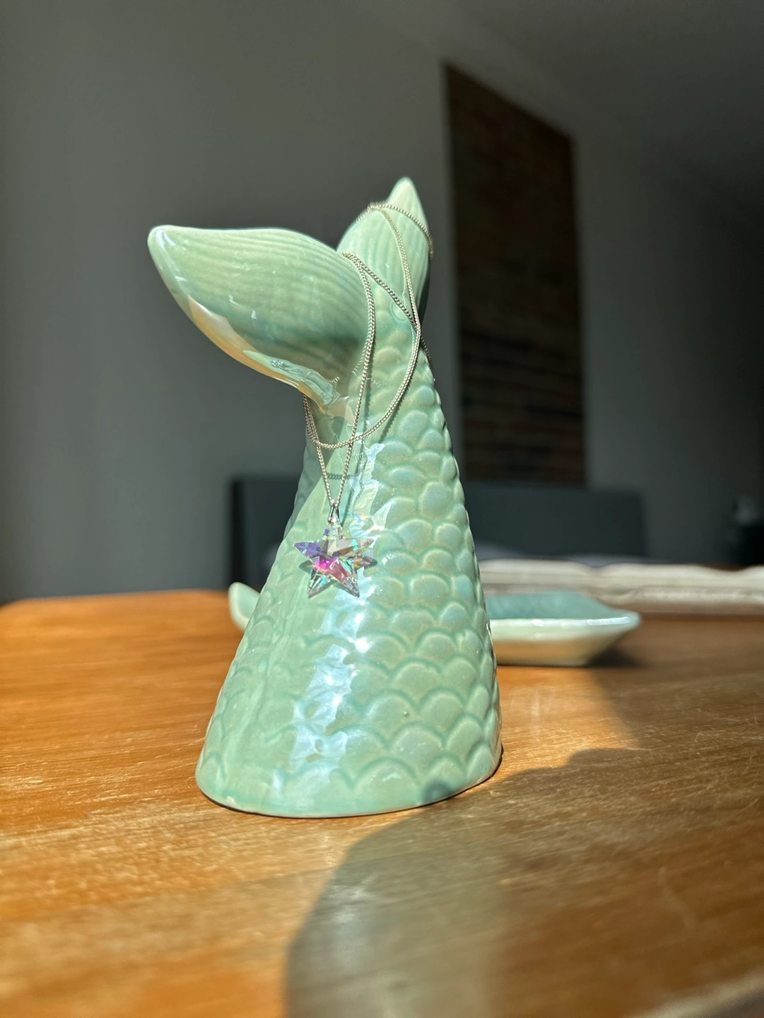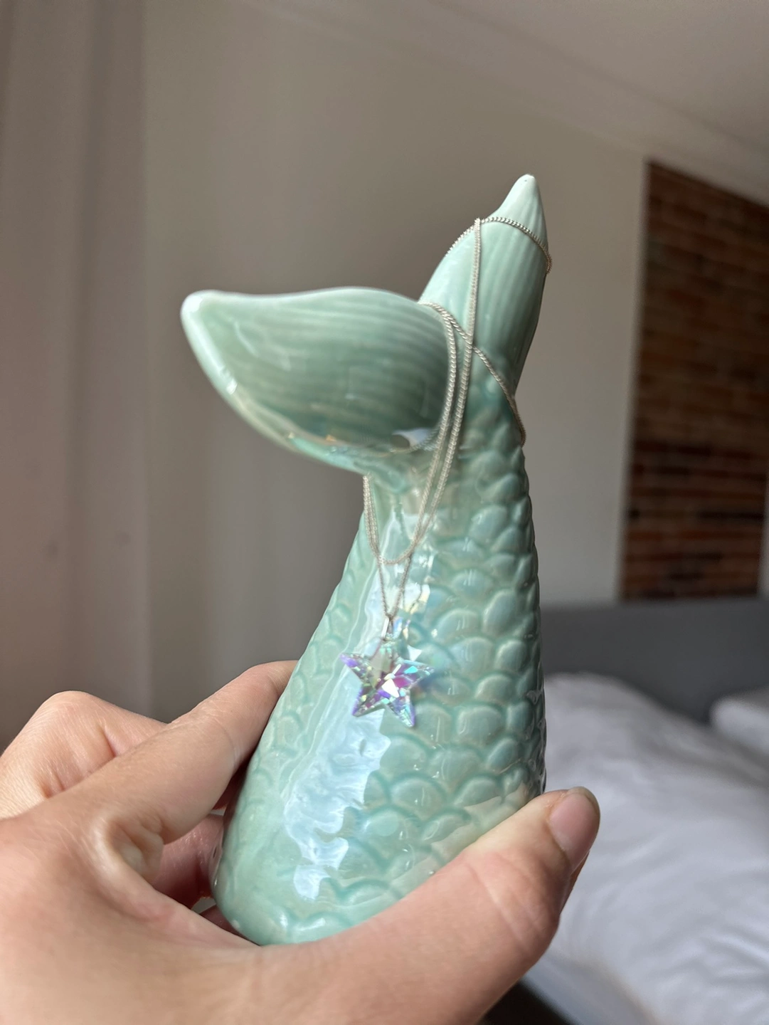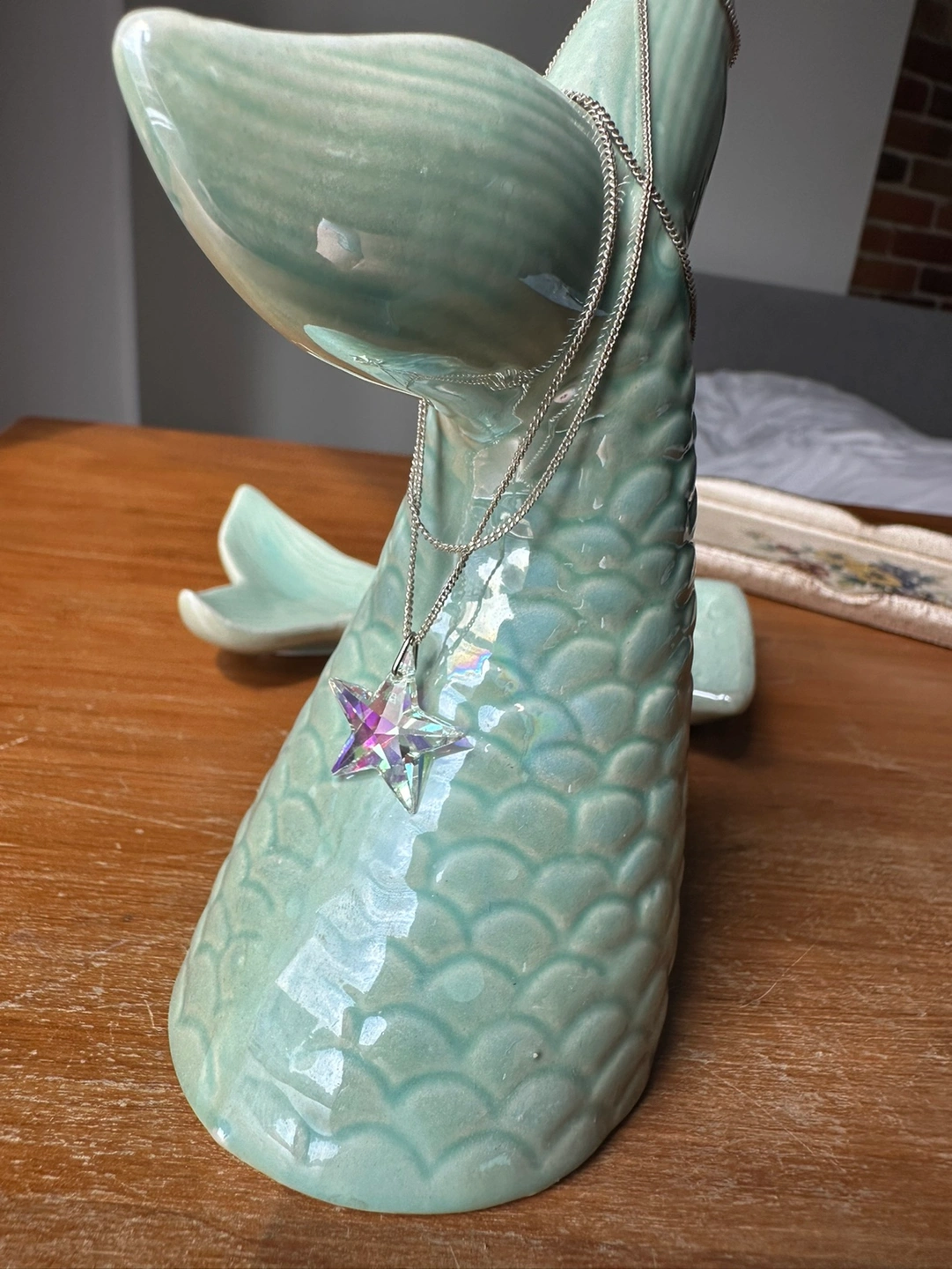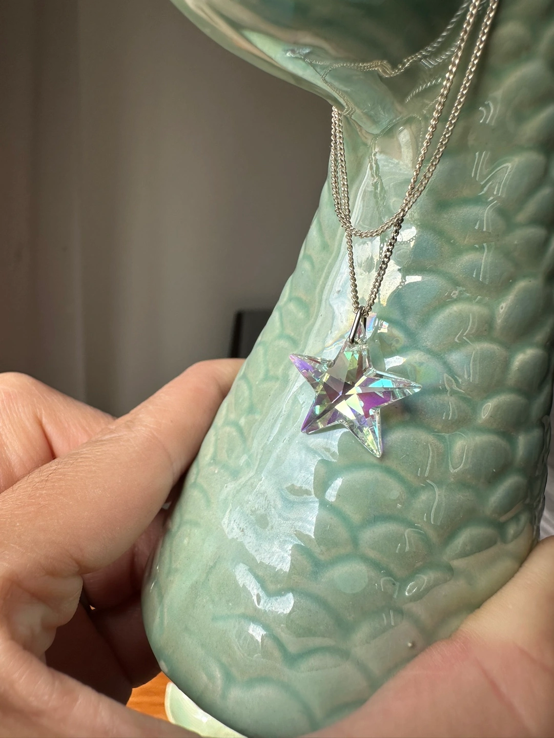 1000+This iridescent silver star necklace features a delicate chain and a beautiful star pendant. CASH ONLY please and thank you.
