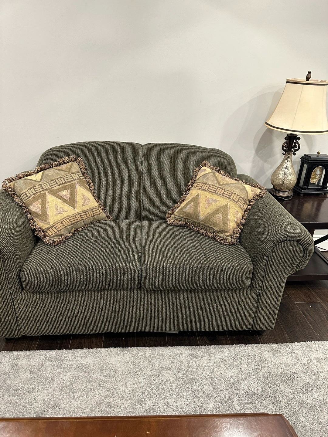 Green couch with love seat