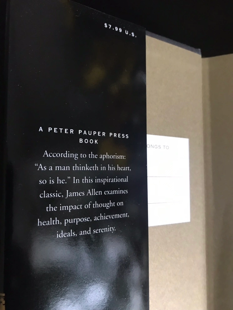 1000+Hardcover book by James Allen entitled "As a Man Thinketh". Compact (not big, long, lengthy) book.