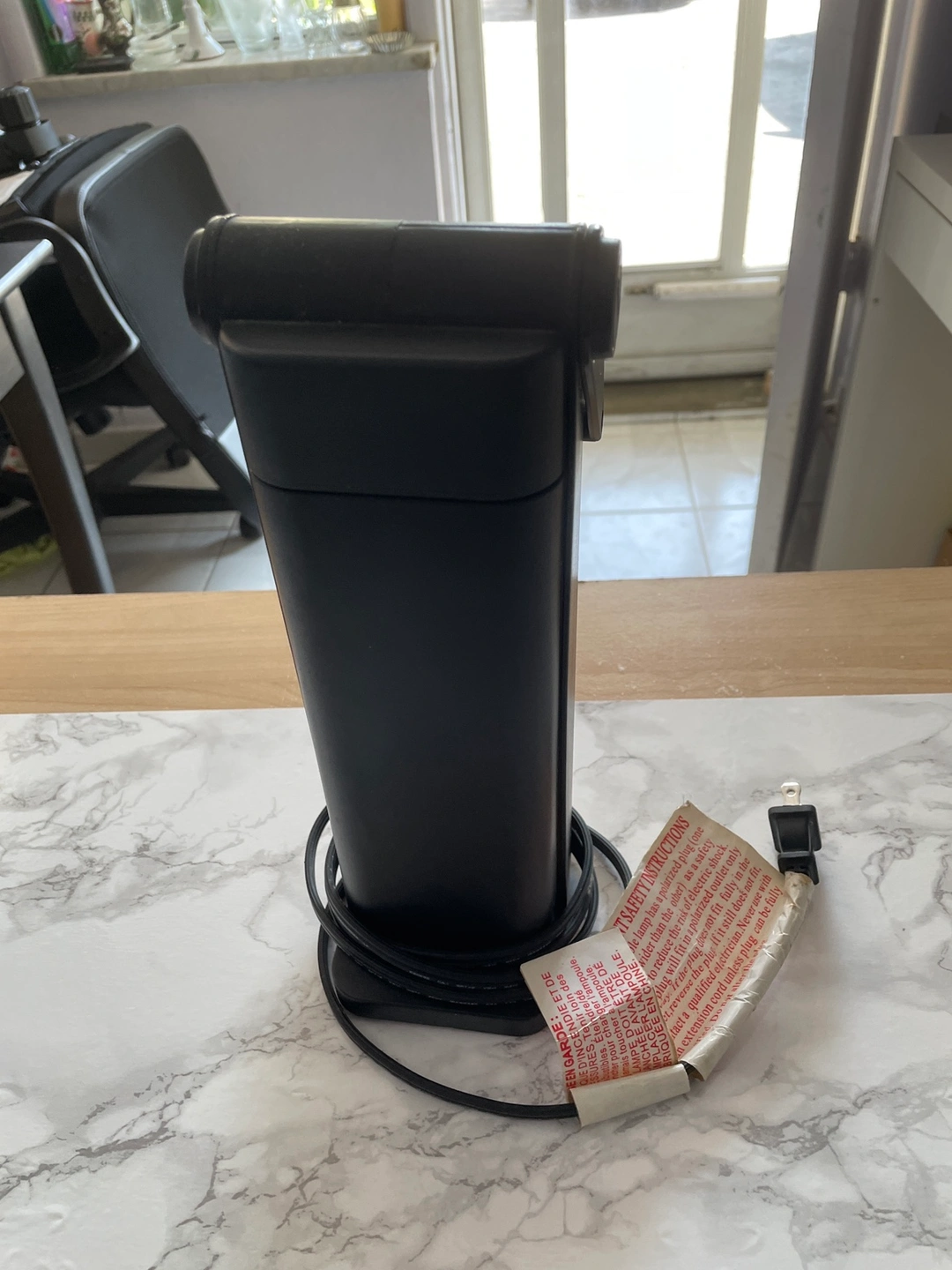 Small table lamp and chair included.