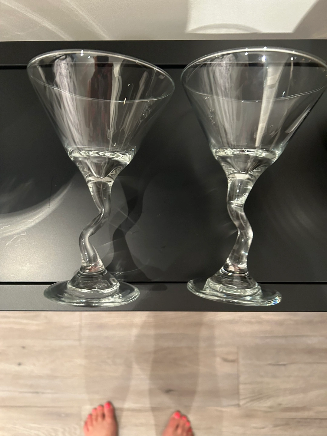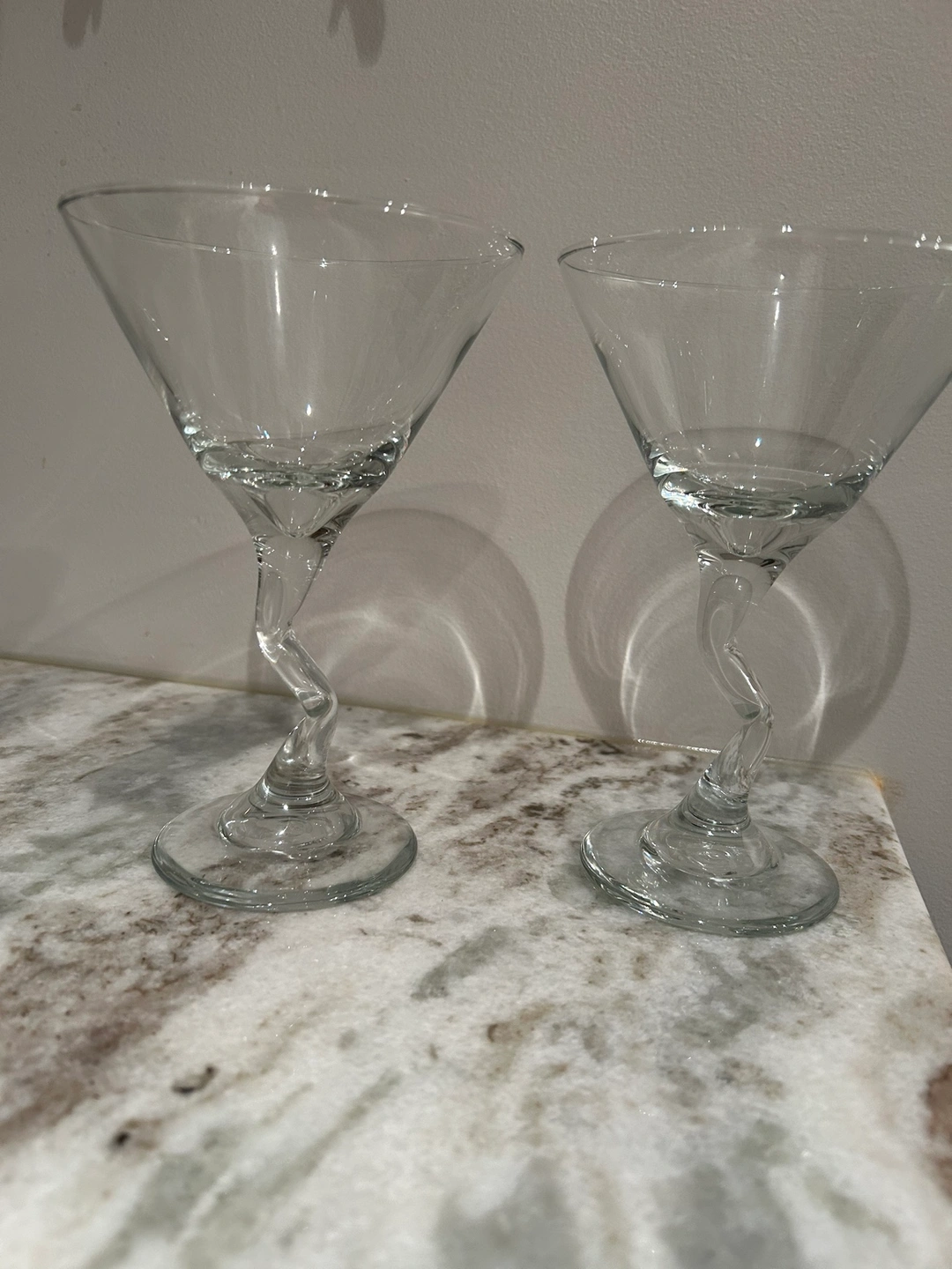 Set of two twisted stem martini glasses. Sat in a cabinet & never used. Looking for them to go to a good home & be appreciated!