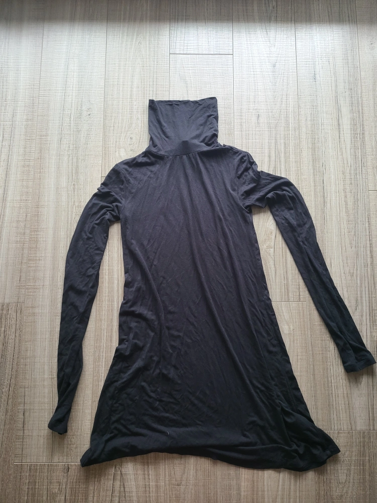 28Black long-sleeved turtleneck dress with a slightly longer length at the back. size xxs