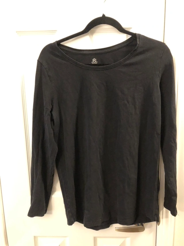 384Long Sleeve Shirt with a round neckline. It is a basic black shirt that would be great for everyday wear.
