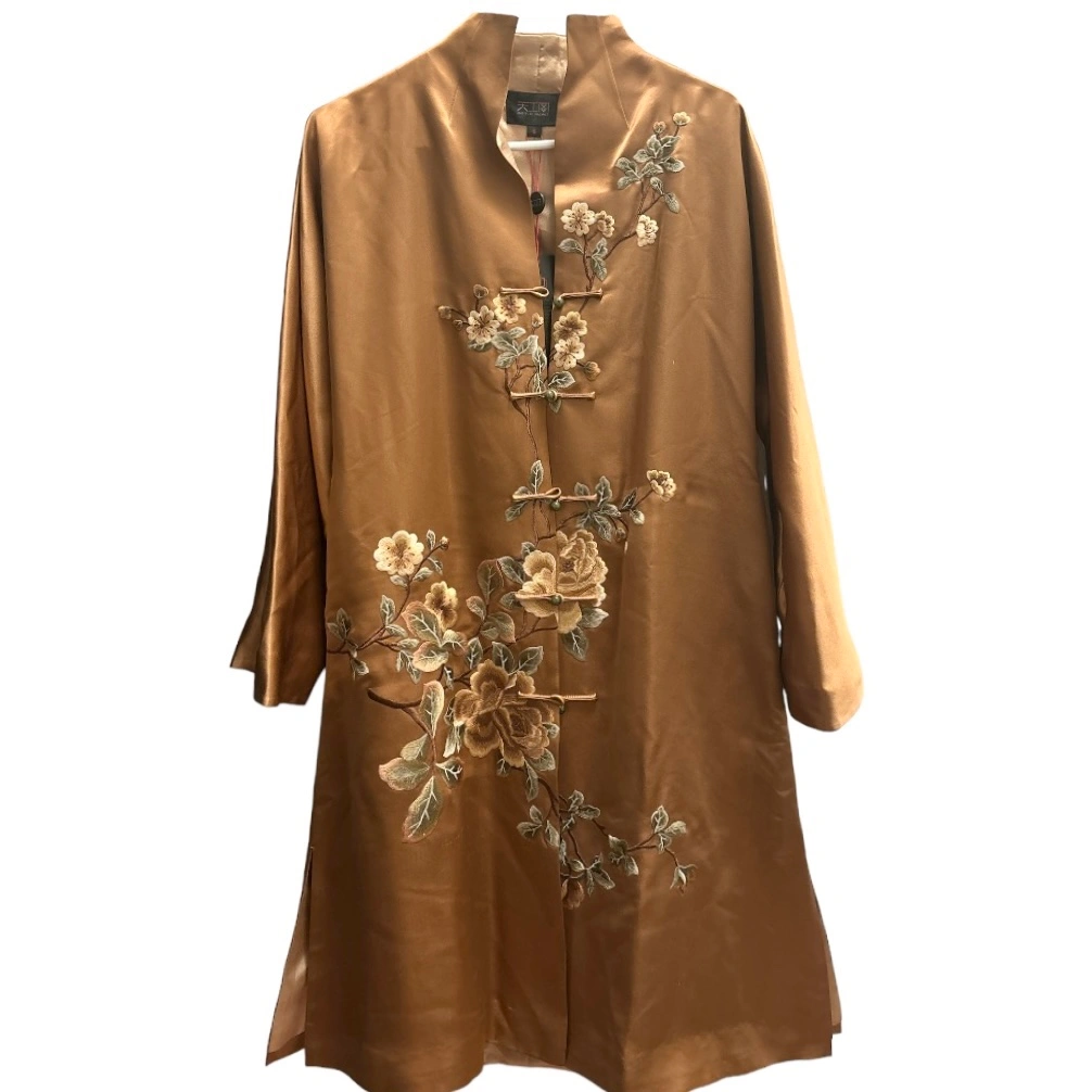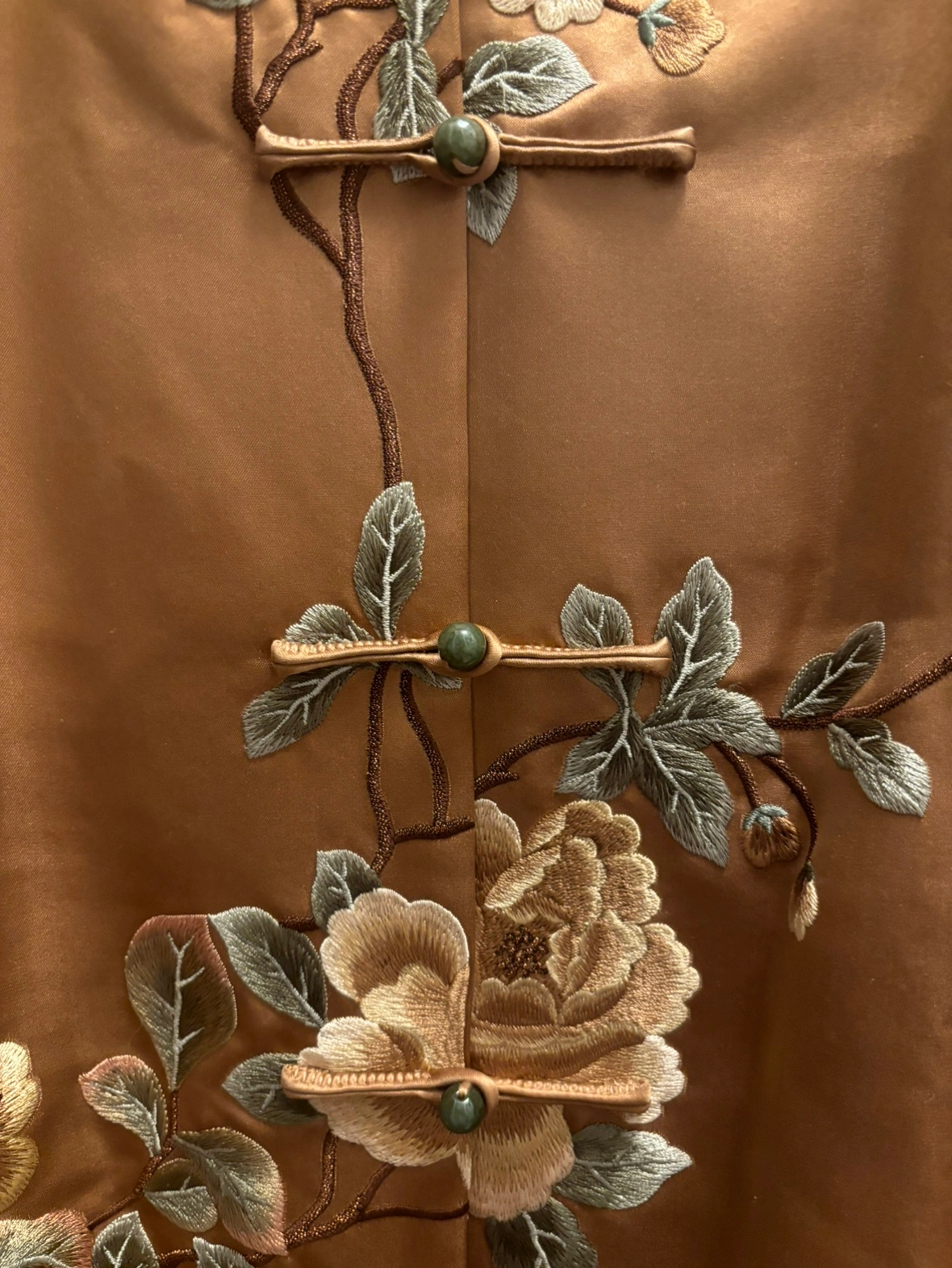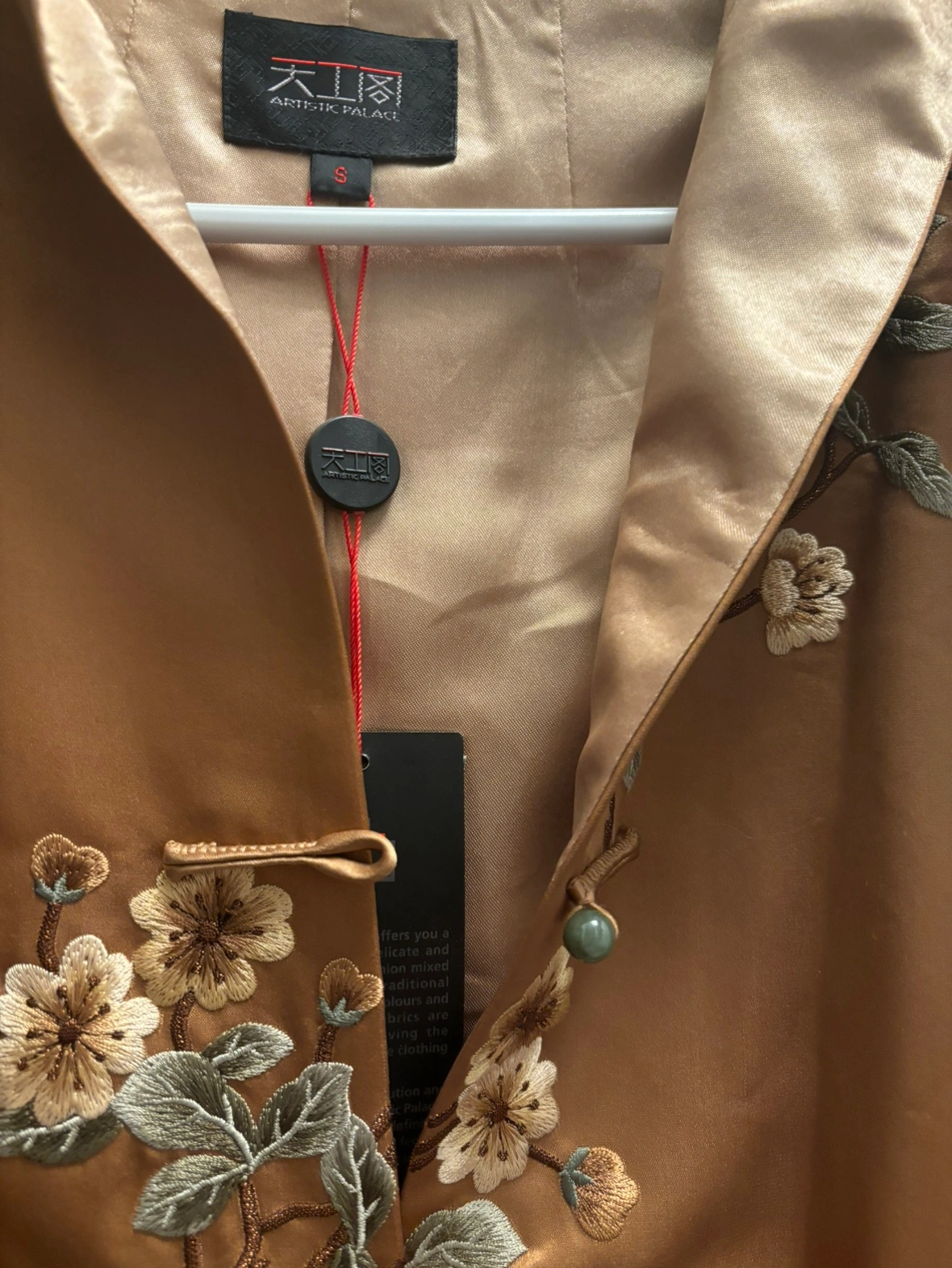 Brand new beautiful 100% Silk coat with embroidered silk flowers. It’s a delicate high quality fashion mixed with Chinese traditional elements.
