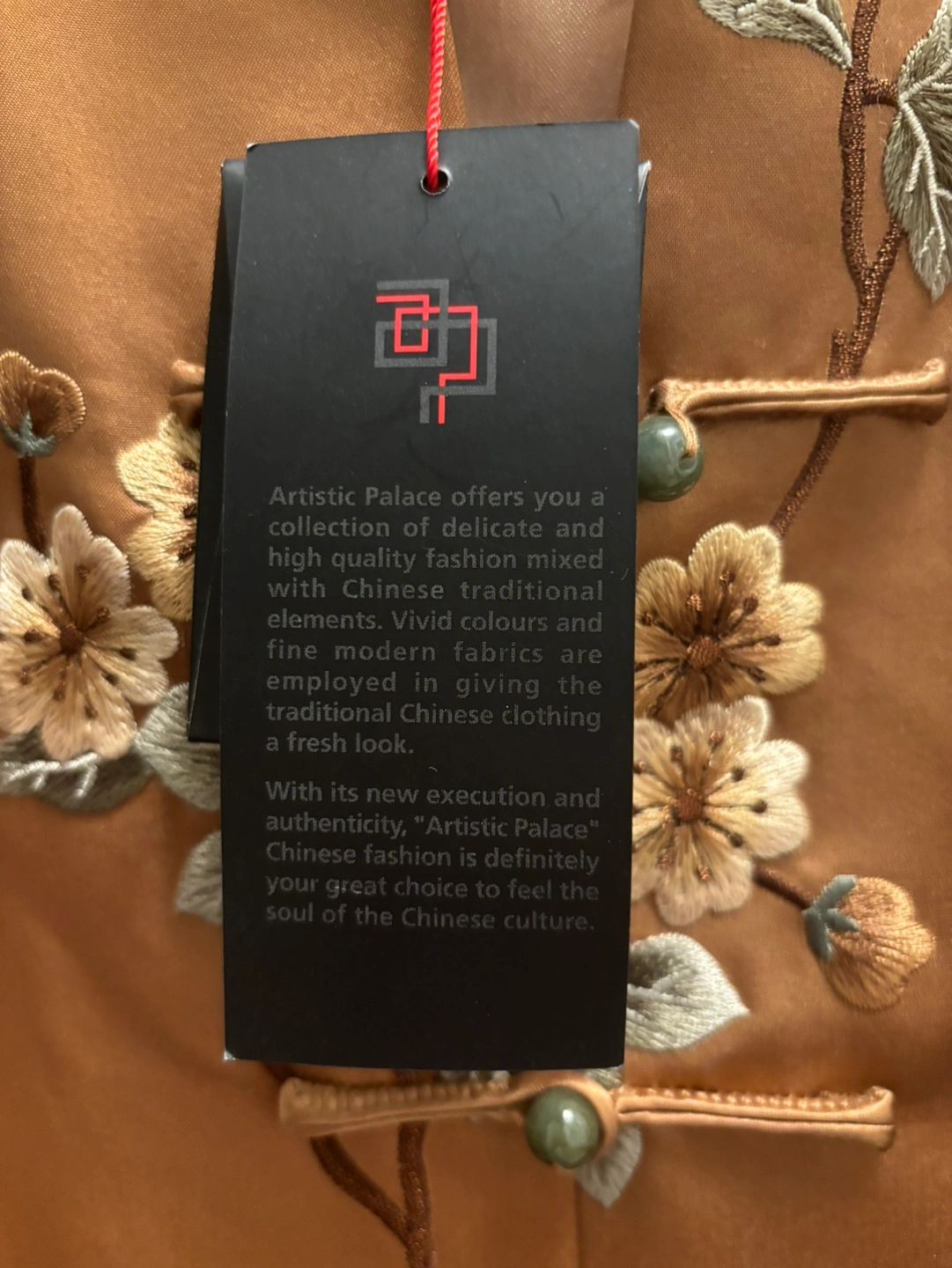 It comes with 5 jade buttons plus one extra in the package. Copper colour. With tag, never worn. Small size. Artistic Palace is a famous brand in Hong Kong, where it offers the best of east and west.