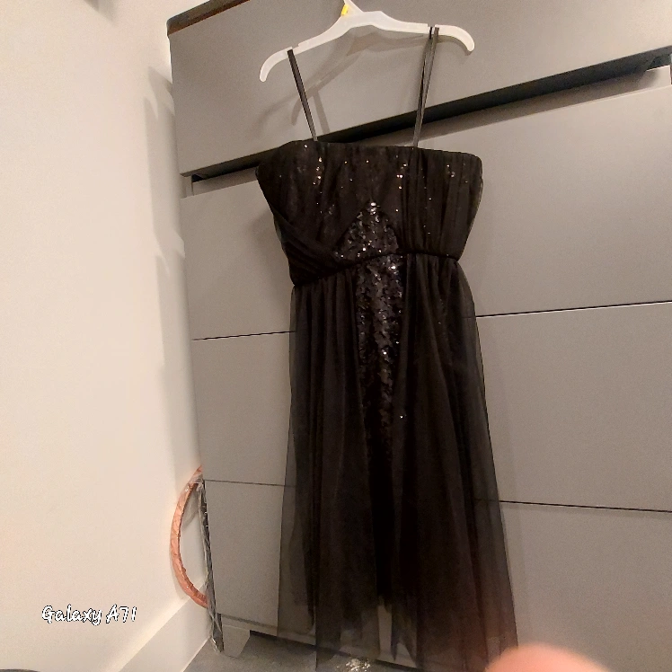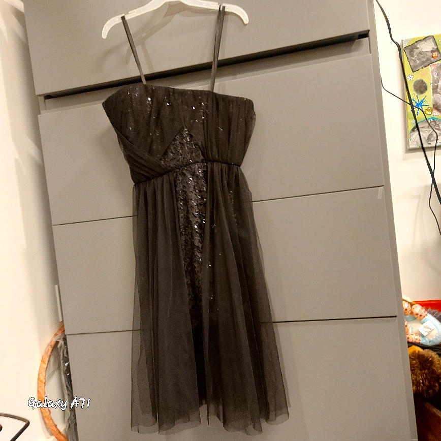 146*BLACK SZ 2 FIRMAL STRALESS (OR THIN SILK BLALK SPAGSTRI STRAPS) DRESS. *WORN ONCE. *CLEAN & IN GRAD CONDITION * PERFECT FOR GRADUATION DRESS. *SILK, FITTED UNDERSIDE THAT COMPLIMENTS FIGURE AND HITS JUST ABOVE KNEE LENGTH *WITH OUTER 2/3 LACE STRIP PIECES THAT LAY OVER INNER SILK OF DRESS & THEY FALL A CPL INCHES LONGER THAN THE SIDE SILK LAYER * OVERALL-FITTED STYLE THAT HUGS BODY & LOOKS GORGEOUS.