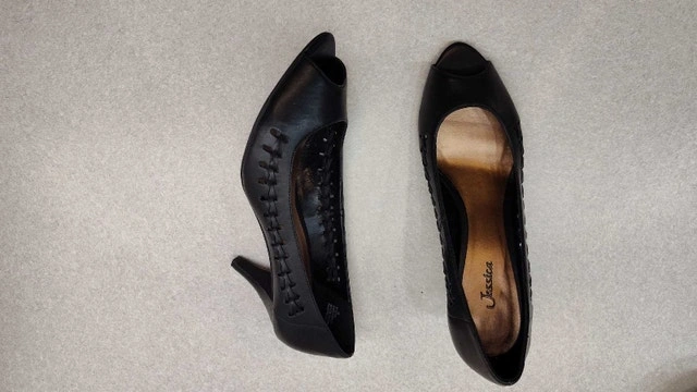 These black peep-toe heels are a stylish addition to any wardrobe, perfect for dressing up or adding a touch of elegance to a casual outfit. Size: 8. Pick up in Lisgar area of Mississauga.