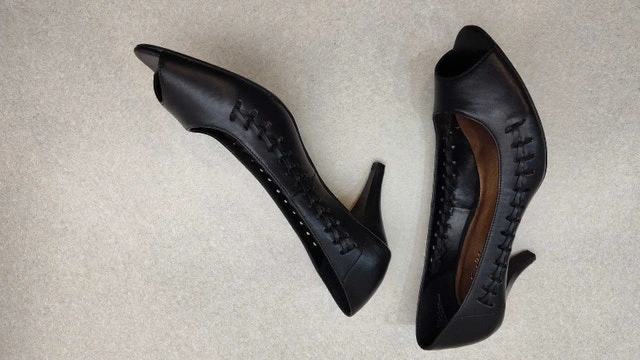 These black peep-toe heels are a stylish addition to any wardrobe, perfect for dressing up or adding a touch of elegance to a casual outfit. Size: 8. Pick up in Lisgar area of Mississauga.