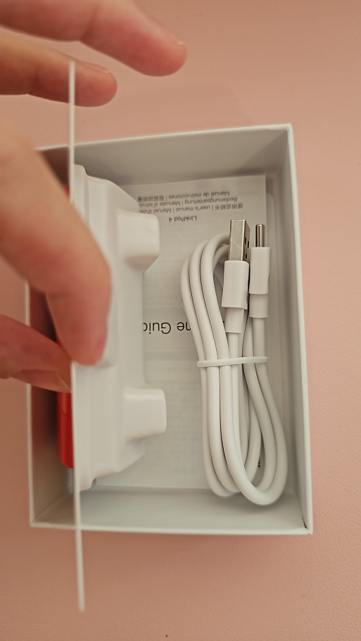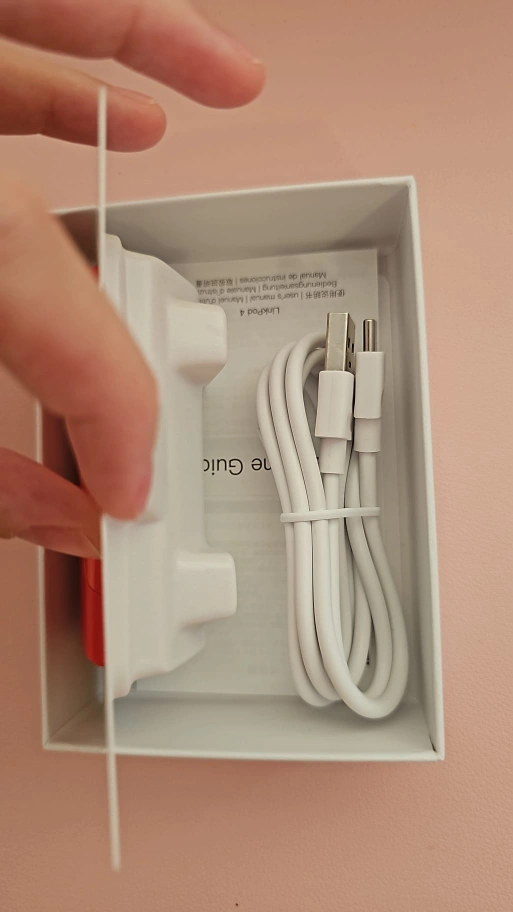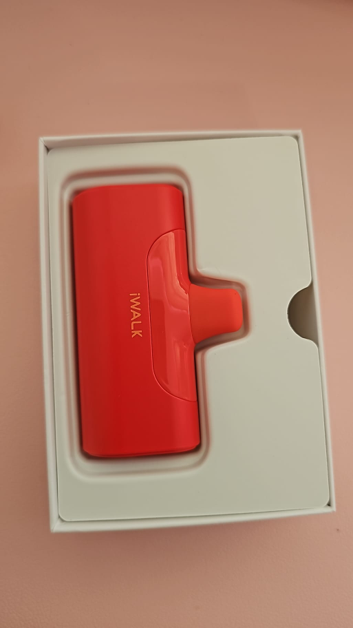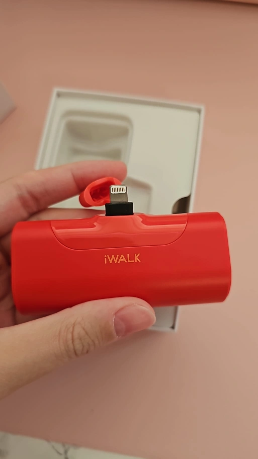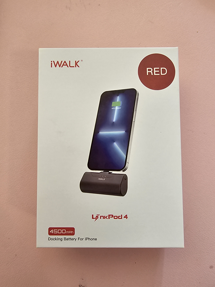 This is a new iWALK LenkPod 4 4500 mAh Docking Battery for iPhone in red. It includes a charging cable and instructions. The device has never been used.