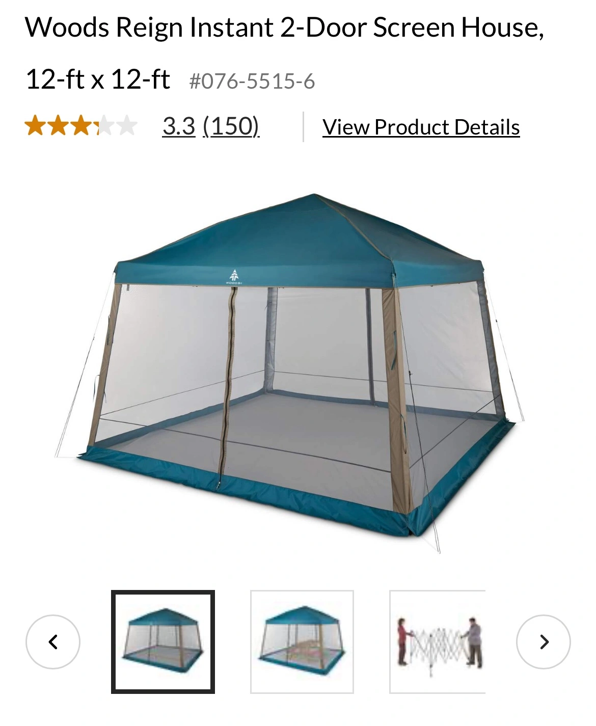A Woods Reign Instant 2-Door dining shelter, great for backyard entertaining, camping, or picnics. This dining shelter is easy to set up and take down. It is made of a durable, weather-resistant material.