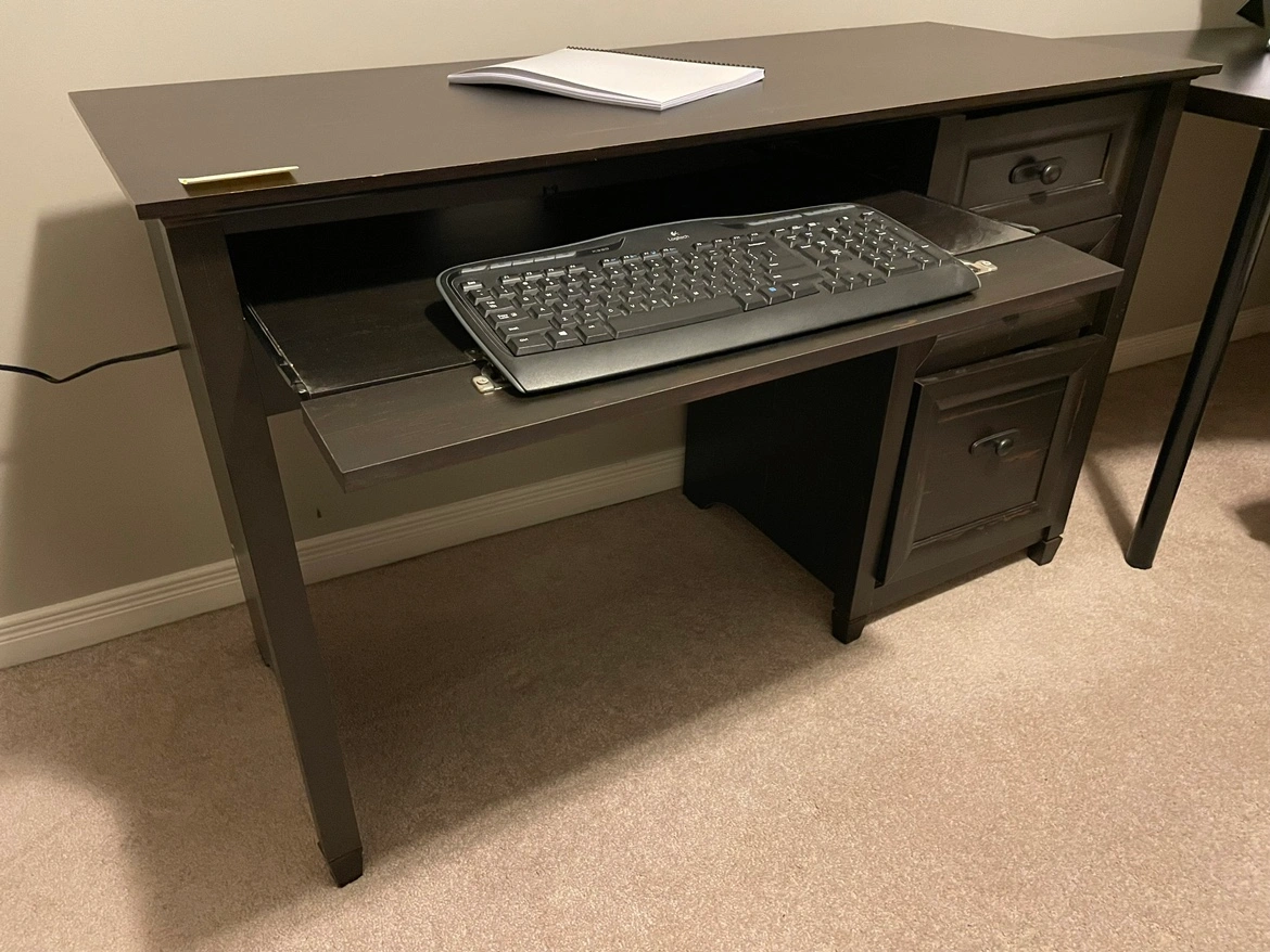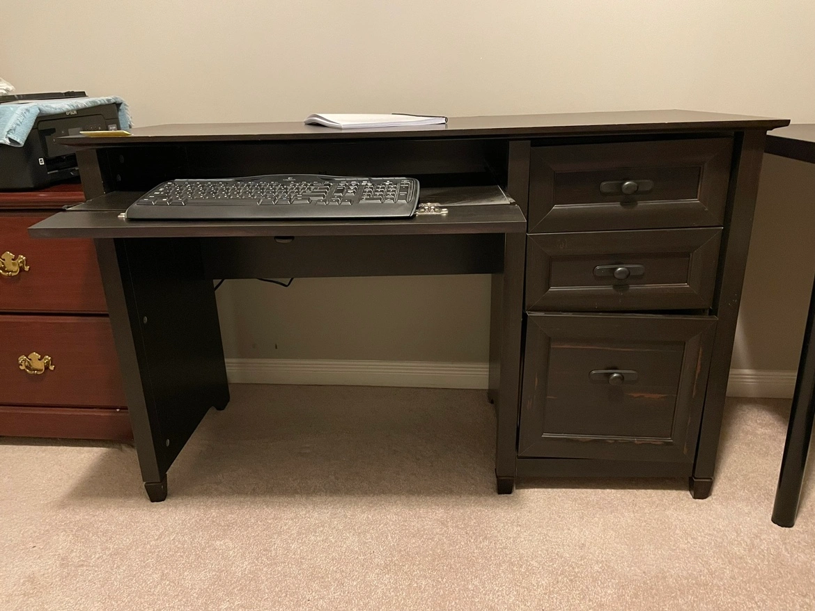 IKEA computer desk with keyboard tray and three drawers. Bottom drawer needs small repair. Great for college/ university dorm.