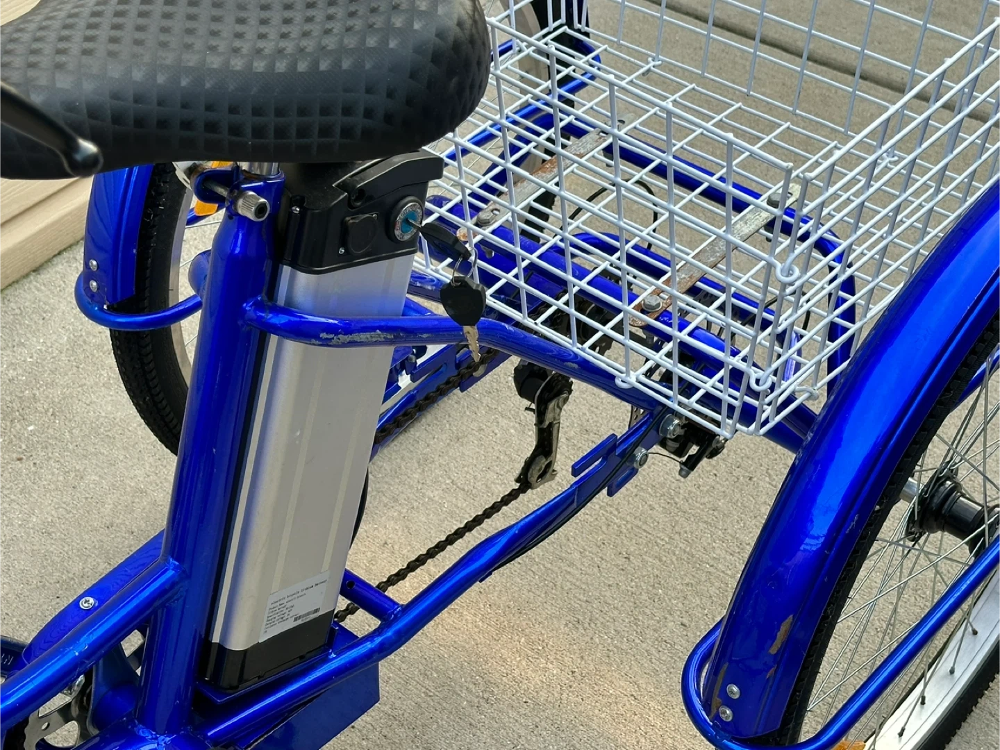Blue Electric Tricycle with Basket
