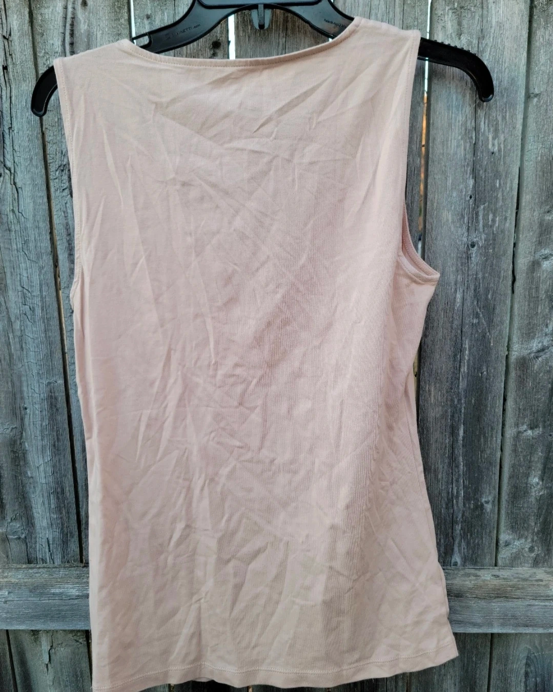 This is an Ann Taylor women's tank top. It features a delicate lace trim along the V-neckline. The material is 95% cotton and 5% spandex for a comfortable fit. Size is small.