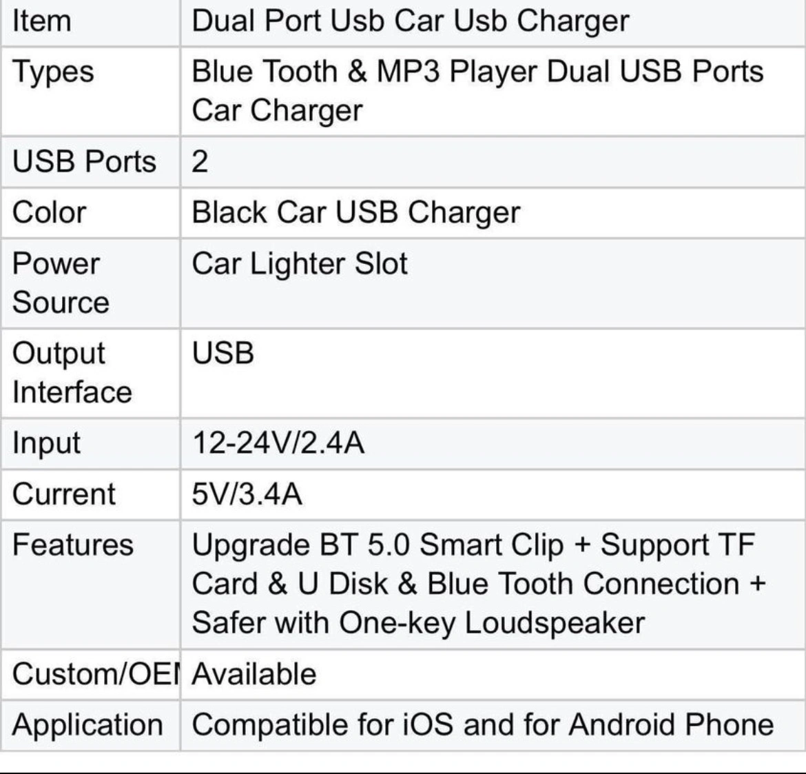 BRAND NEW! This Bluetooth Car Charger can be used in a variety of vehicles. It has a built-in microphone for hands-free calling and a dual USB port for charging devices. The LCD screen displays the time and voltage.