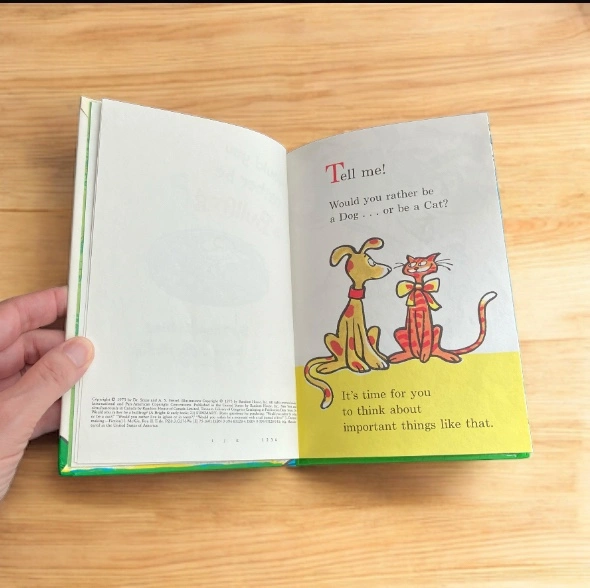Vintage and in excellent preowned condition. Dr. Seuss Would you rather be a Bullfrog? hardcover book.