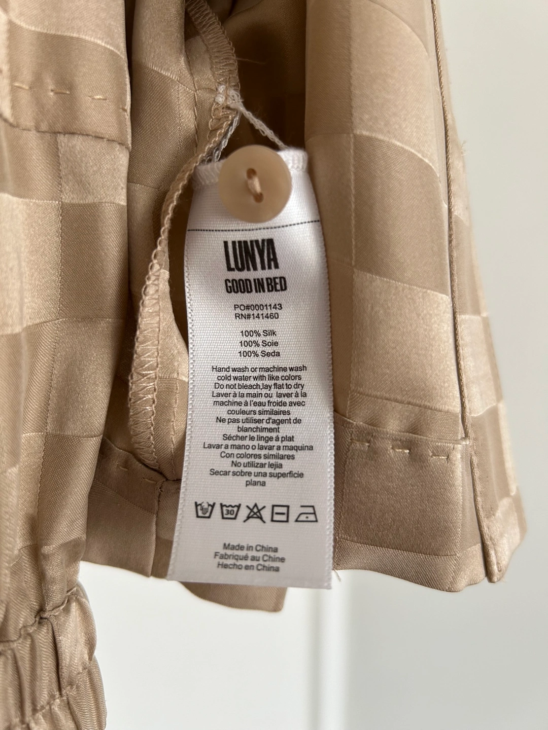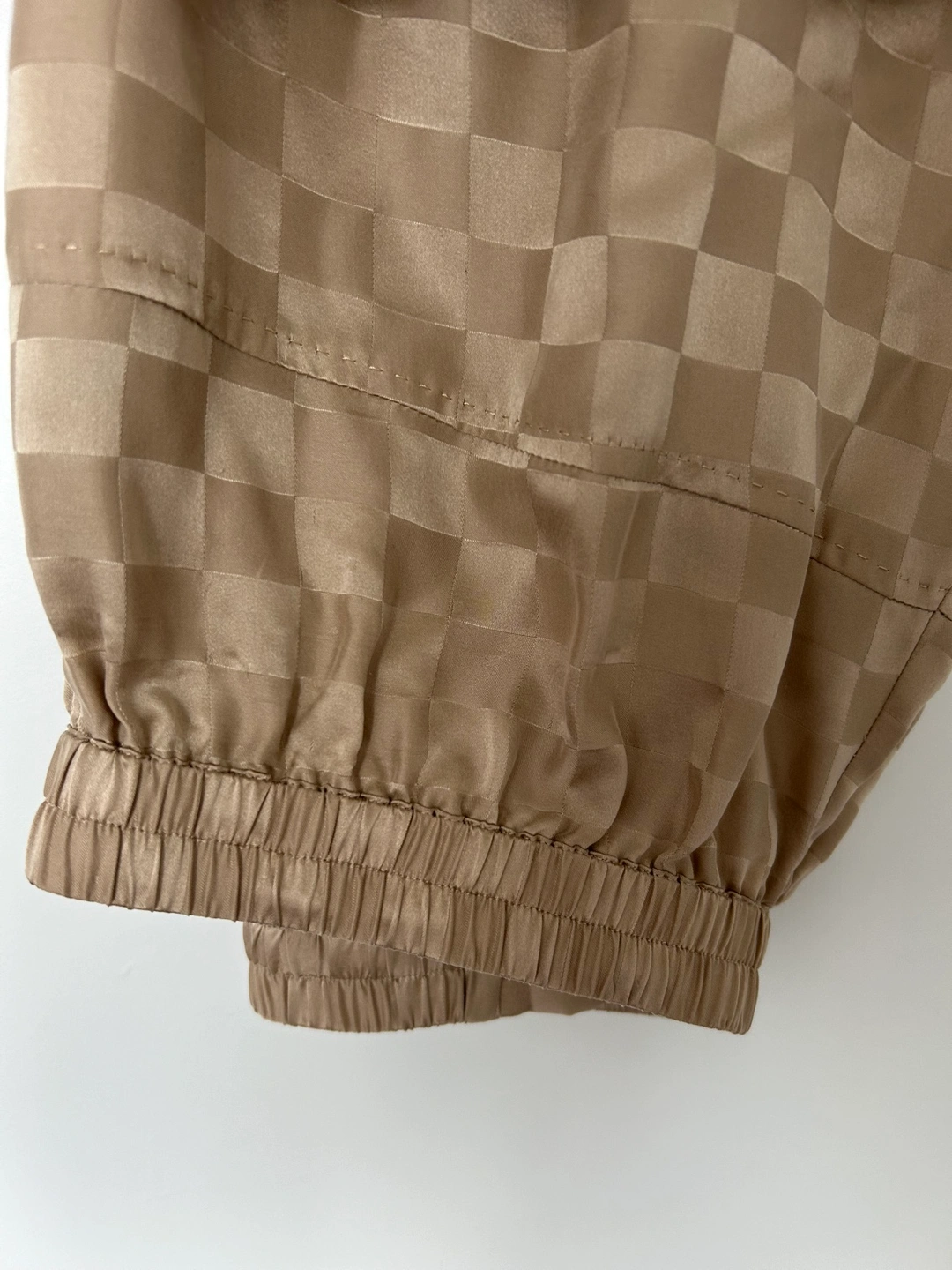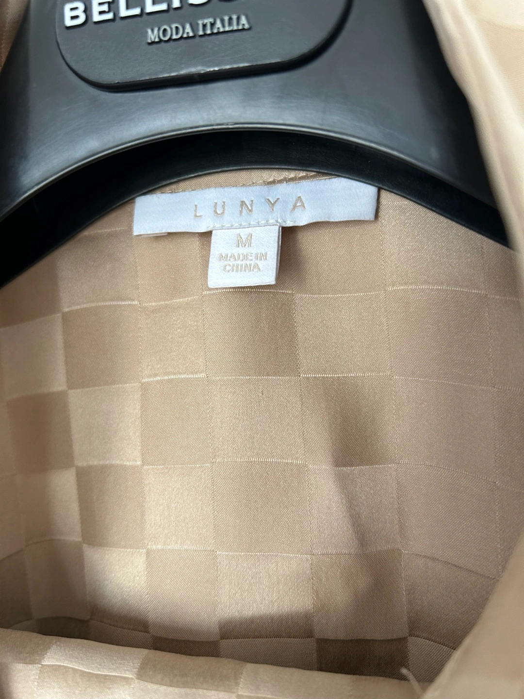 Size small - beige checkered pattern 100% silk - brand new with tags - worn once for photos. Machine washable!!!! Cash and pick-up only, thanks!