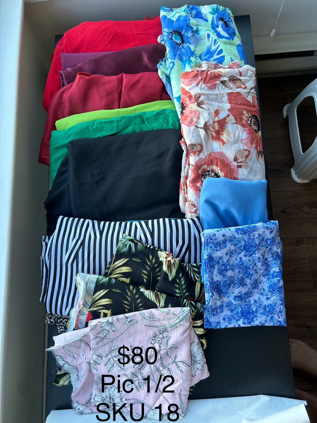 My mum has too much stock and we don’t have enough time to measure every piece or sell separately. Must take it ALL, no exceptions. See other listings for other types of fabric.