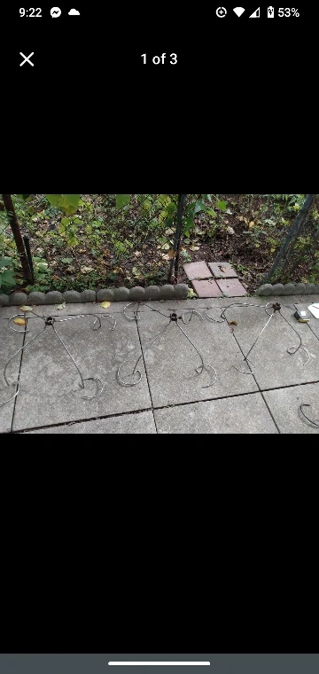 Made a few for folks and friends but these are whats left they have been stripped of original paint and we attached to metal posts to make a hanging 4 pot plant stand for garden beds and spray painted black and staked into ground.