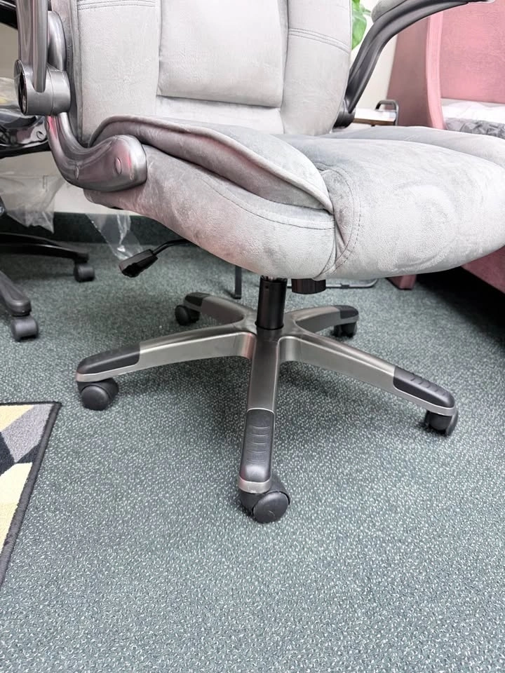Brand New assembled Grey velvet executive style chair with cushioned back and seat. Pickup near Whiteoaks.