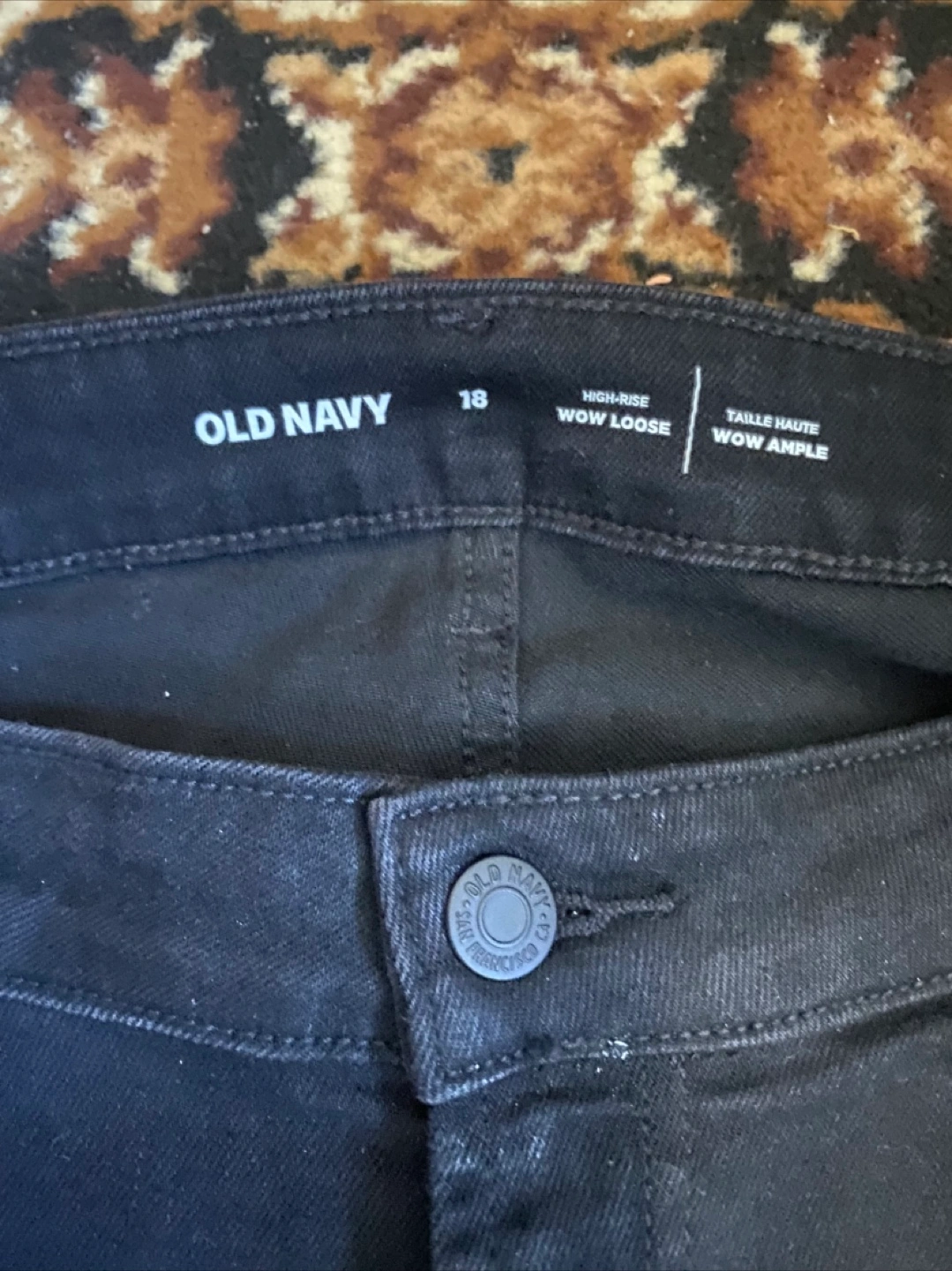Selling a pair of Old Navy High-Rise WOW Loose jeans in black. They are a size 18 and in great condition. Perfect for a casual, comfortable fit!
