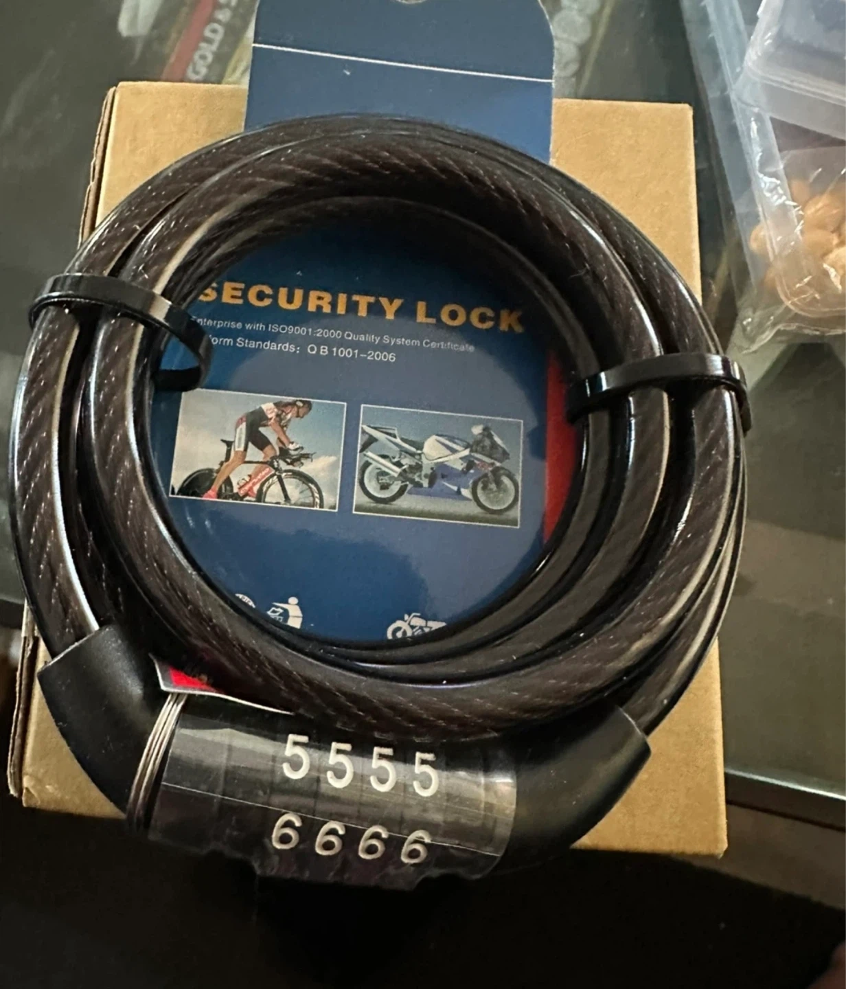 This is a 8mm x 1200mm security cable lock. The preset combination is not resettable. It's designed for securing bicycles, strollers, or gates. Made in China.