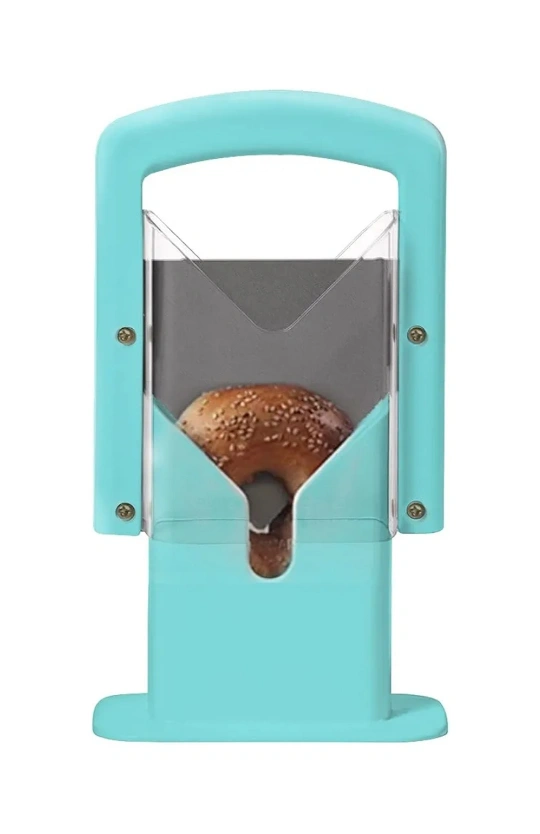 Stainless Steel Bagel Slicer with Safety Handle - Aqua Sky