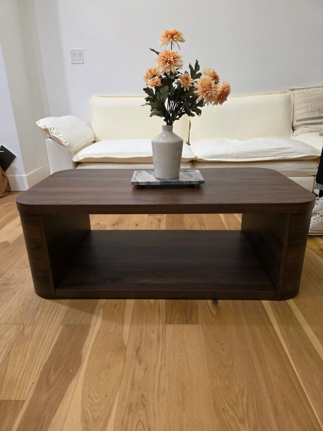 Selling a like new Juliet walnut coffee table from Better Homes & Gardens! It's honestly impressively nice looking for the price, and it's lightweight so easy to carry away. Has a very light mark on the top and side (see photos) but nothing noticeable.