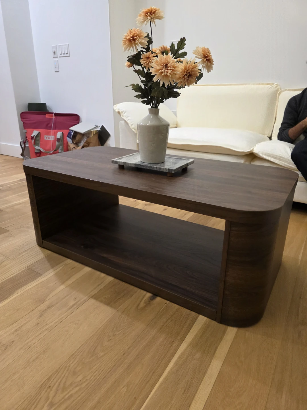 Selling a like new Juliet walnut coffee table from Better Homes & Gardens! It's honestly impressively nice looking for the price, and it's lightweight so easy to carry away. Has a very light mark on the top and side (see photos) but nothing noticeable.