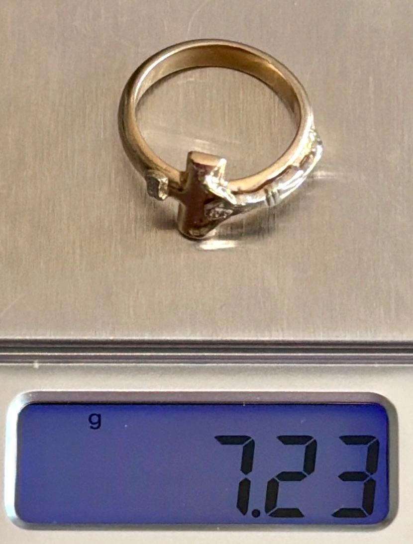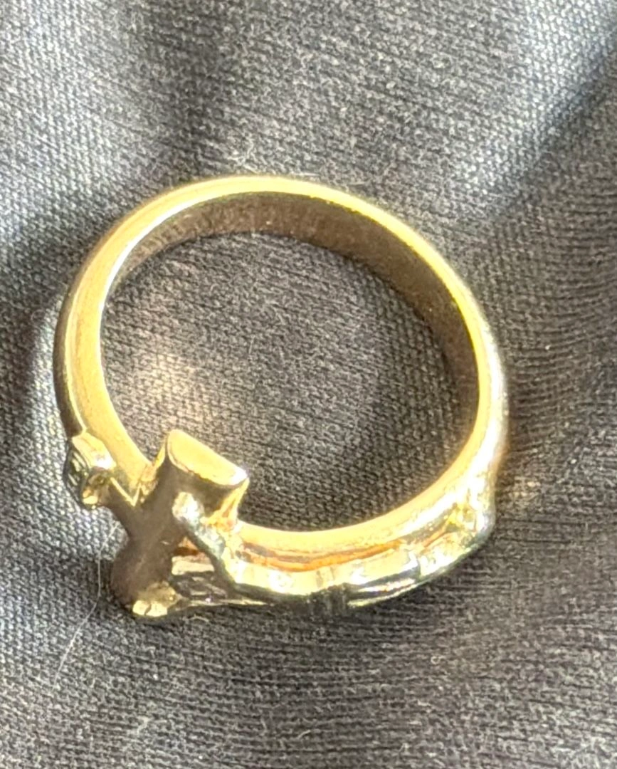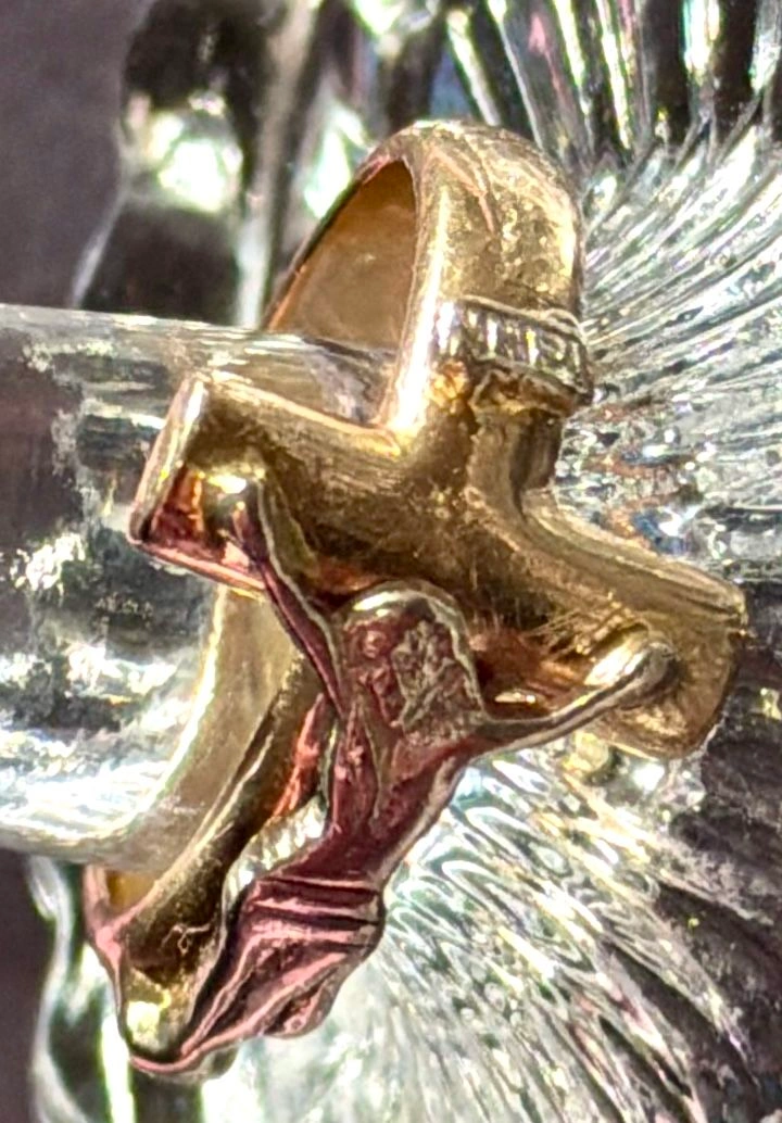 14K Yellow Gold Crucifix Ring - Size 7 - Two Tone