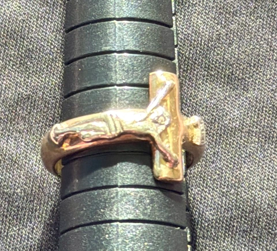 14K Yellow Gold Crucifix Ring - Size 7 - Two Tone