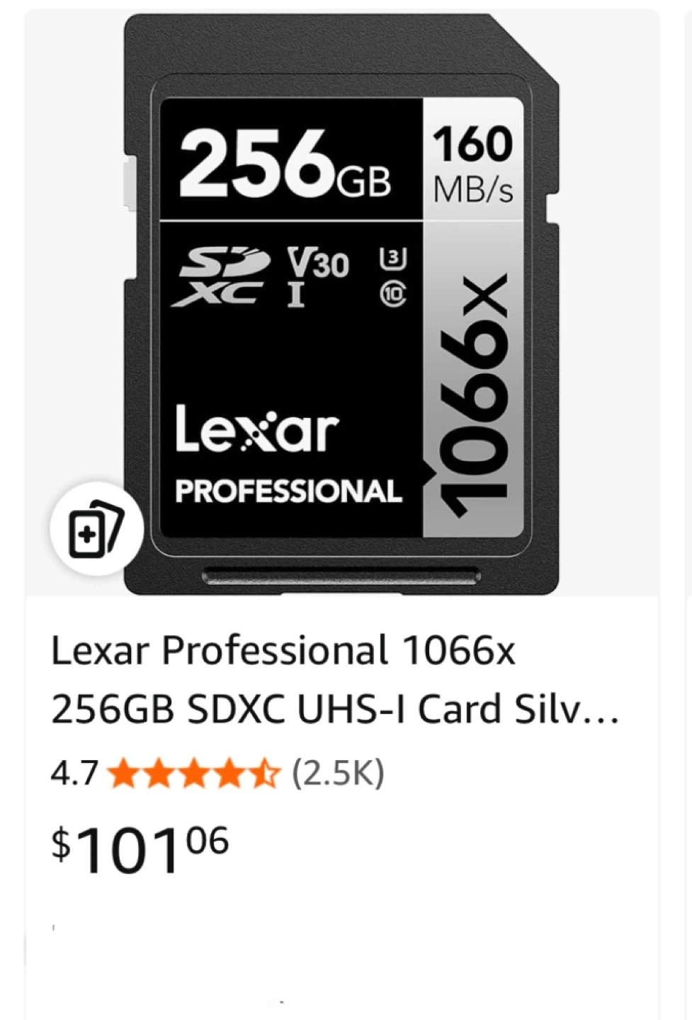 Lexar Professional 1066x SDXC card with 256GB capacity. Supports UHS-I interface with read speeds up to 160 MB/s. Ideal for professional photography and videography needs. Good condition. No case/box